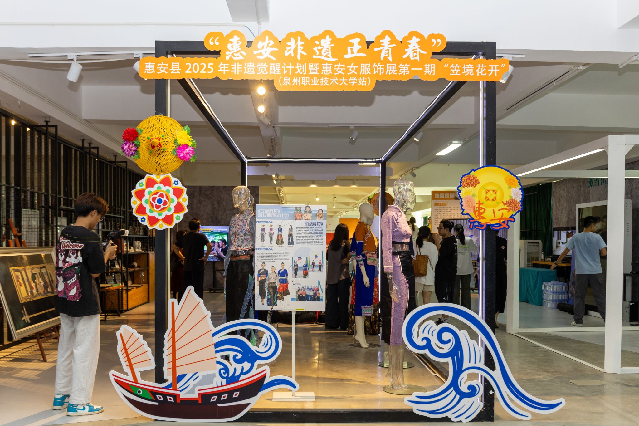 9月25日,一群身穿惠女服饰来自艺术传媒学院的学生,带来一场主题为“惠安非遗正青春”的惠安县 2025 年非遗觉醒计划暨惠女服饰展。