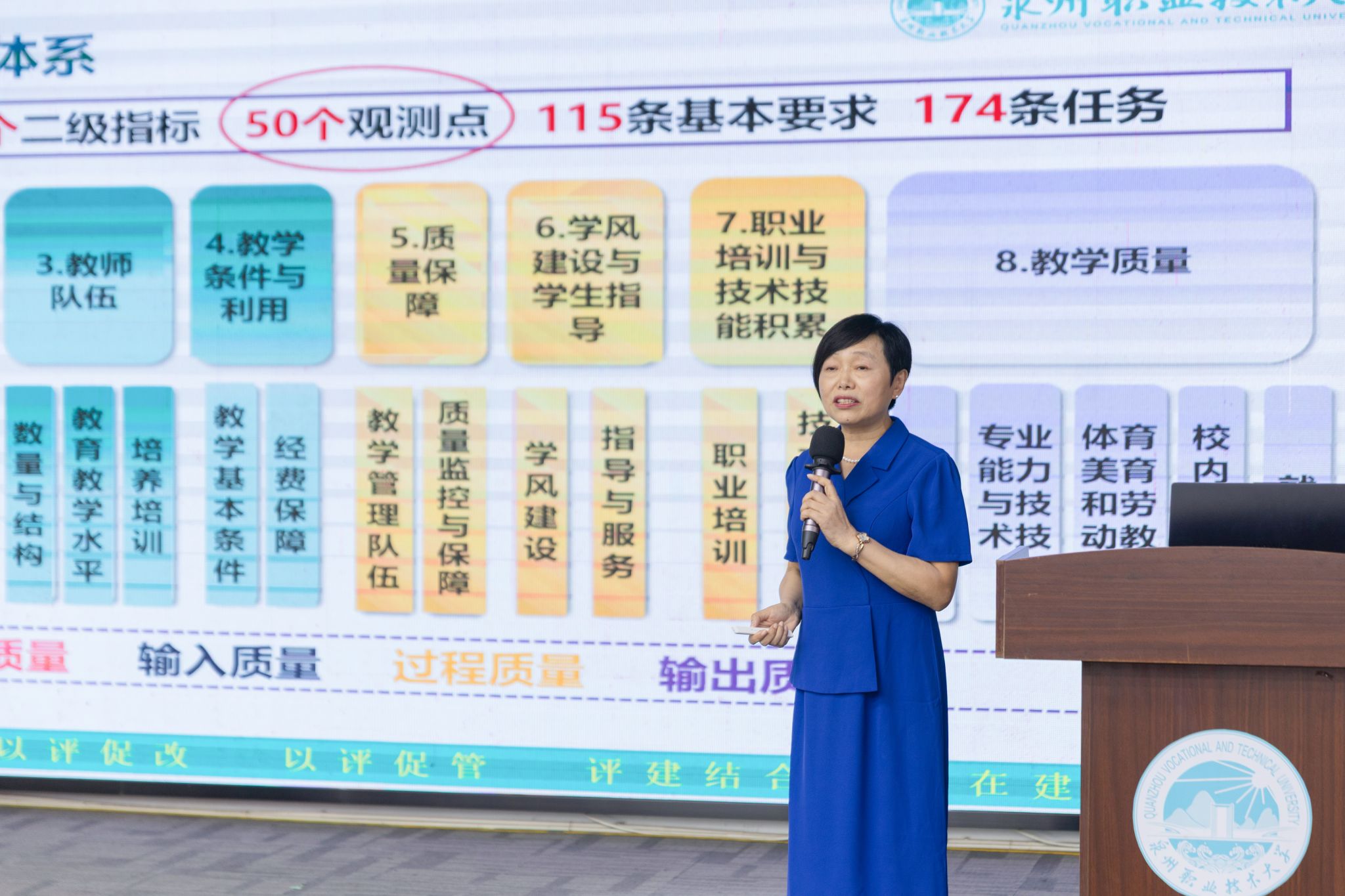 她系统阐述了评估专家进校考察的主要方式,包括材料审读、深度访谈、听课看课等,强调各单位应对照评估指标,进一步深化对评估内涵的理解,持续完善教学基本条件、教学基本规范、质量管理保障和校园迎评氛围建设,扎实做好自评报告完善、教学状态数据梳理和网站内容更新等各项准备工作,以评促建、以评促改,推动学校教育教学质量持续提升。