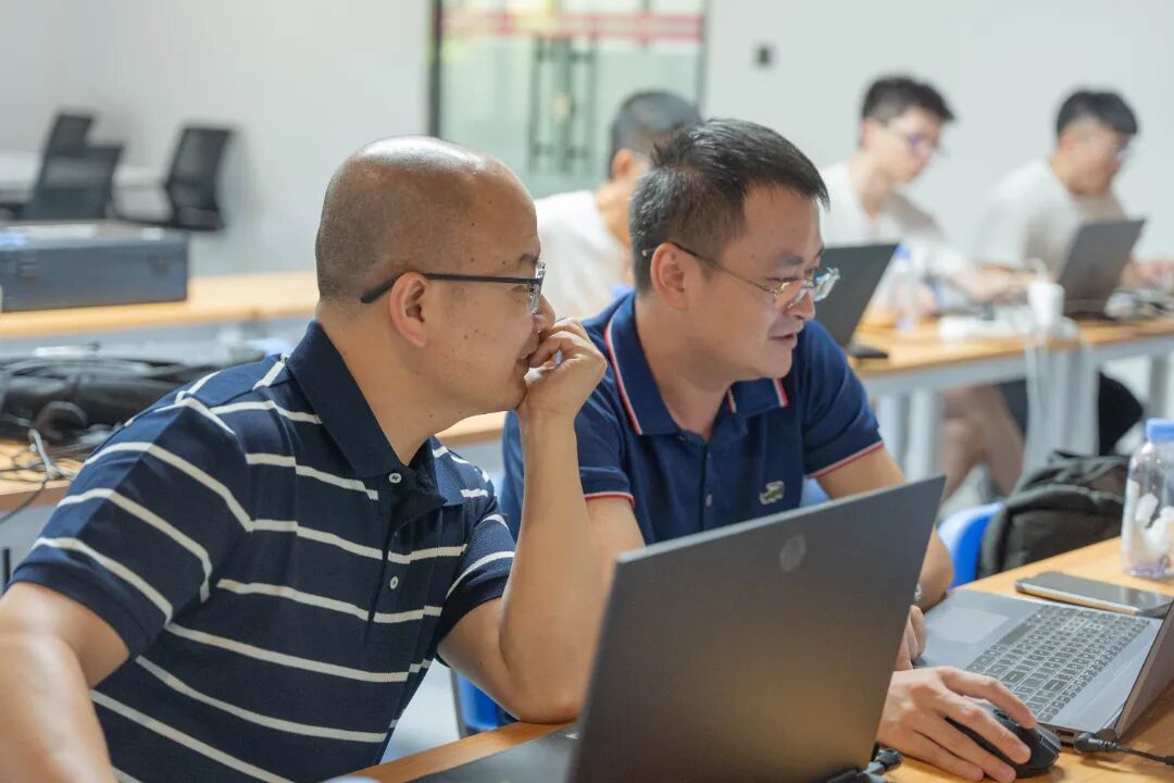 奇安信高教合作中心总监李向辉深度剖析网安领域人才协同培养路径;华为高级讲师们以项目式教学为载体,带领全院教师完成鸿蒙与人工智能技术项目实战教学,并组织答辩与复盘。