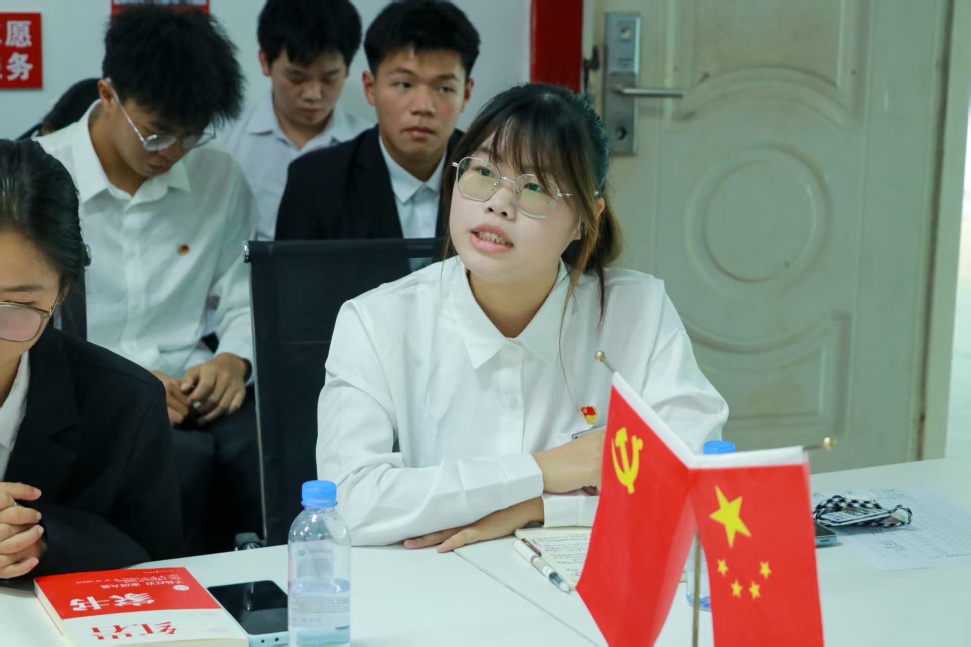 研读活动现场,学生党员纷纷分享读完《红岩家书》的感悟与收获,来自三创书院第二党支部的预备党员李欣娜分享了本人的读书感悟:“每读烈士事迹,总不禁鼻酸。车耀先烈士的遗训令我铭记:“谦、俭、劳为立身之本,骄、奢、逸为终身之戒。”这朴素的箴言,是他一生的写照,提醒我们不忘来路、不丢初心。这种精神,至今仍照亮我们前行的路。”另一位学生党员阮晓玲也分享了读书感悟:“书中“愿你用变秋天为春天的精神,把祖国的荒沙,耕种成为美丽的园林”给我深刻震撼,是蓝蒂裕对儿子的嘱托,也是对后世同志的交付。要以先烈为敬,以“功成不必在我功成,必定有我”的精神努力。”
