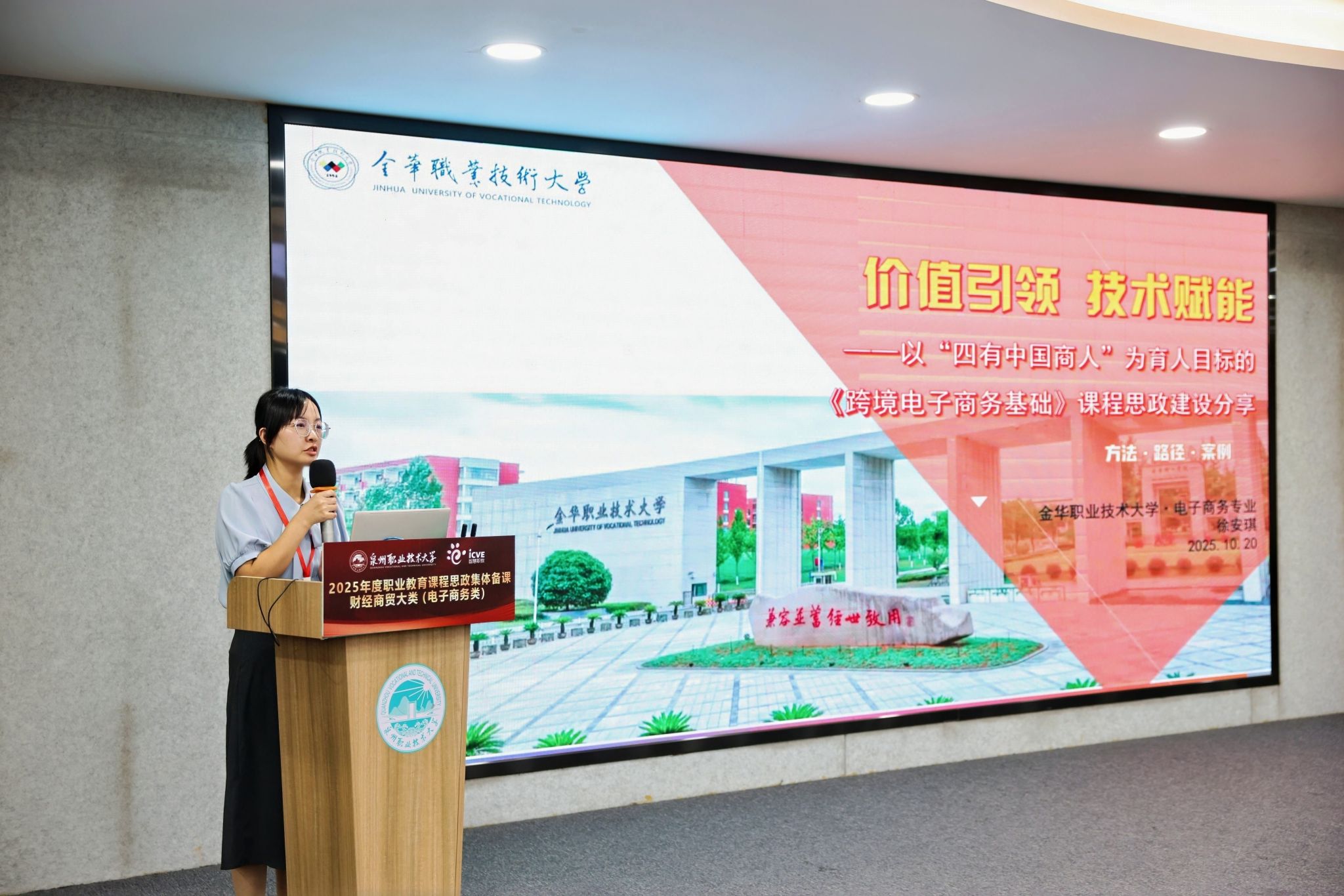 在经验分享环节,来自金华职业技术大学、广东科学技术职业学院、浙江工贸职业技术学院、泉州职业技术大学等院校的教育部课程思政示范项目、国家精品在线开放课程等教师团队,分别围绕跨境电子商务基础、网店运营数据分析、移动营销、创新创业基础等电商类专业课程,分享课程思政建设的宝贵经验和实践案例。