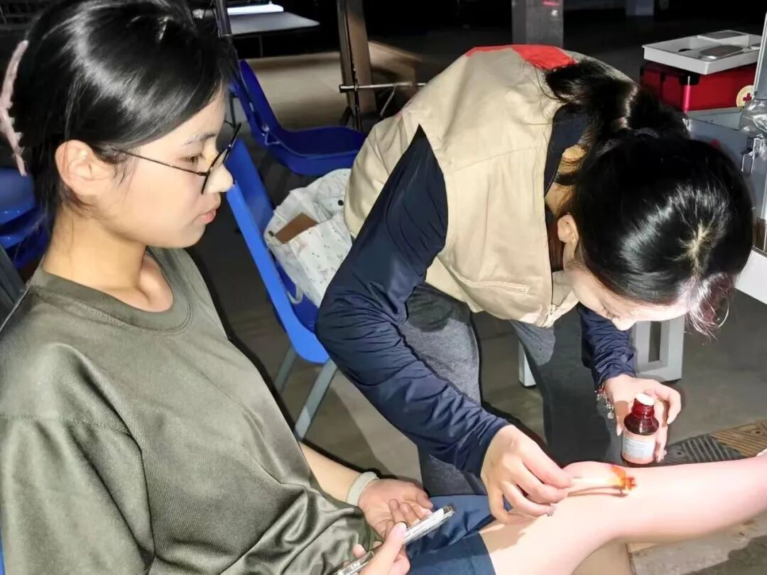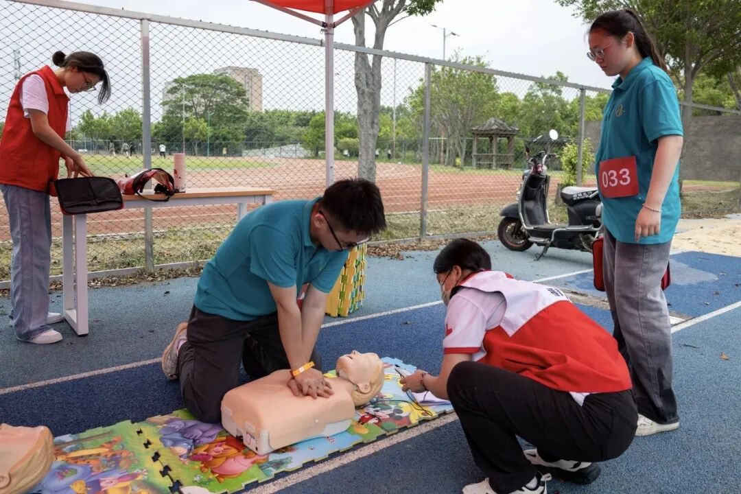 我校红十字会积极拓展志愿服务场景,在校园内外彰显公益担当。在校园运动会期间,设立红十字志愿服务点,志愿者们携带急救箱、担架等设备,为参赛师生提供现场医疗保障、应急救护及健康咨询服务,守护赛事安全有序开展;在新生军训期间,在训练场地周边设置红十字服务点,为参训新生提供防暑降温药品、伤口处理、医疗救助等贴心服务,用坚守与陪伴守护学子成长。同时,主动对接社会需求,组织志愿者参与晋江马拉松比赛、全国“和美乡村健康跑”晋江站等大型赛事的医疗保障工作,累计完成20余场校园及社会赛事的应急救护任务,让急救技能在实战中发挥作用,用行动诠释“奉献、友爱、互助、进步”的志愿精神。