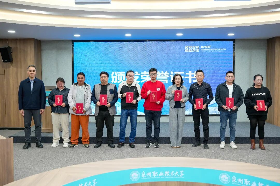 ▲ 晋江市侨联党组书记、主席陈建军,泉州职业技术大学终身教育学院院长吴燕红为与会人员颁发荣誉证书
