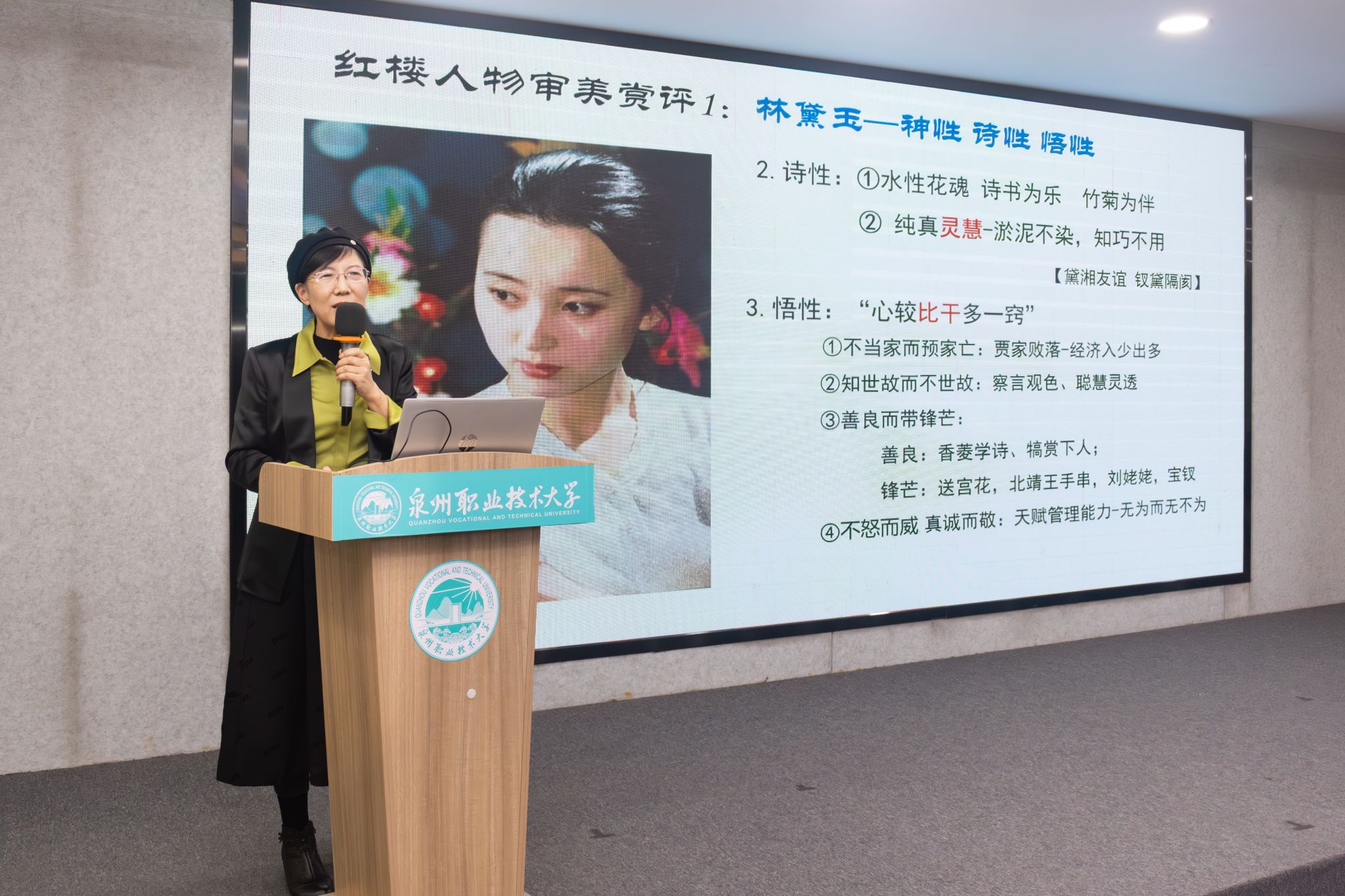 12月10日,泉州职业技术大学举行第四届阅读文化节闭幕式暨《红楼梦》人物漫谈主题讲座。各学院、书院负责人及师生代表齐聚一堂,共同回顾阅读文化节系列活动成果,聆听经典智慧,表彰先进典型。