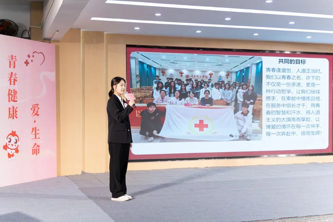 下午的主题演讲阶段,各高校选派一名选手登台,围绕“青春健康·爱·生命”核心主题,结合自身经历与感悟诠释红十字精神,深情讲述志愿服务故事,用真挚的情感与有力的表达,让这一跨越时空的向善力量直抵人心,充分传递当代青年学子践行公益初心和青春担当。