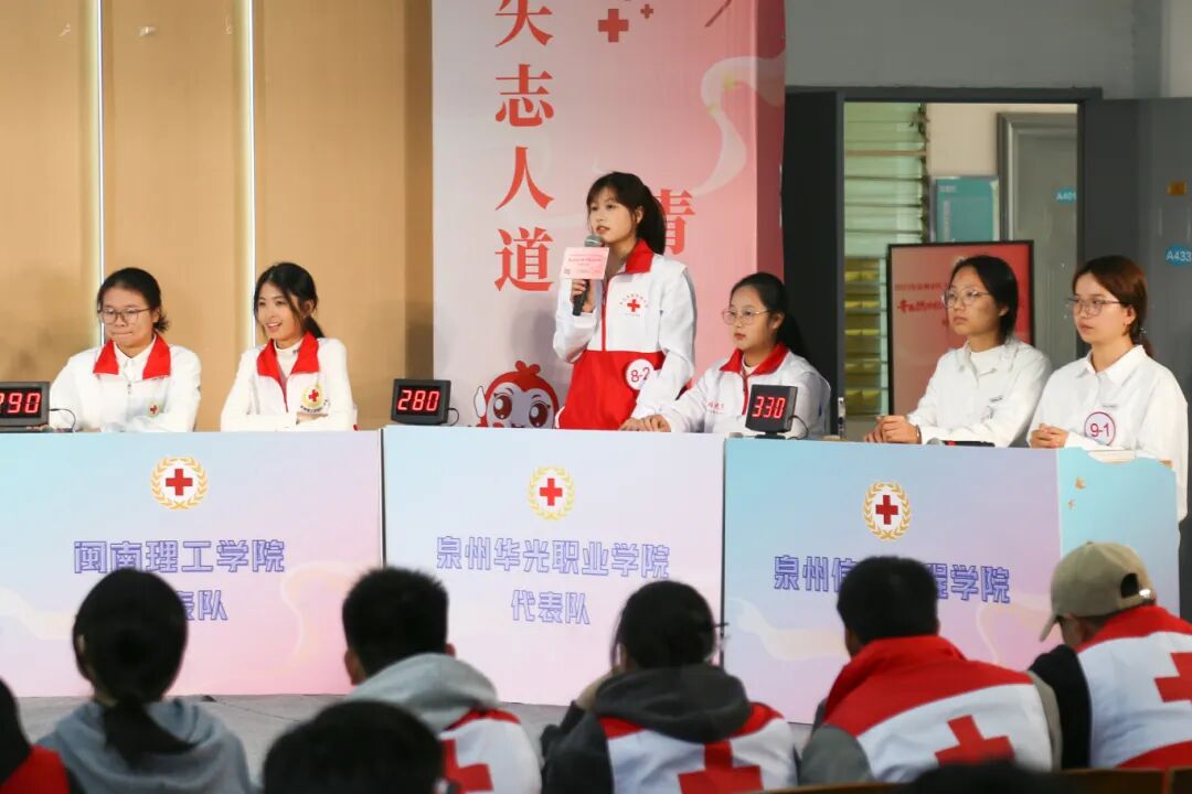 本次竞赛由泉州市红十字会主办,晋江市红十字会、泉州职业技术大学红十字会、泉州市红十字现场救护培训中心共同承办,来自全市9所高校的红十字青少年代表队同台竞技,以知识比拼践行初心,以青春演讲传递担当。
