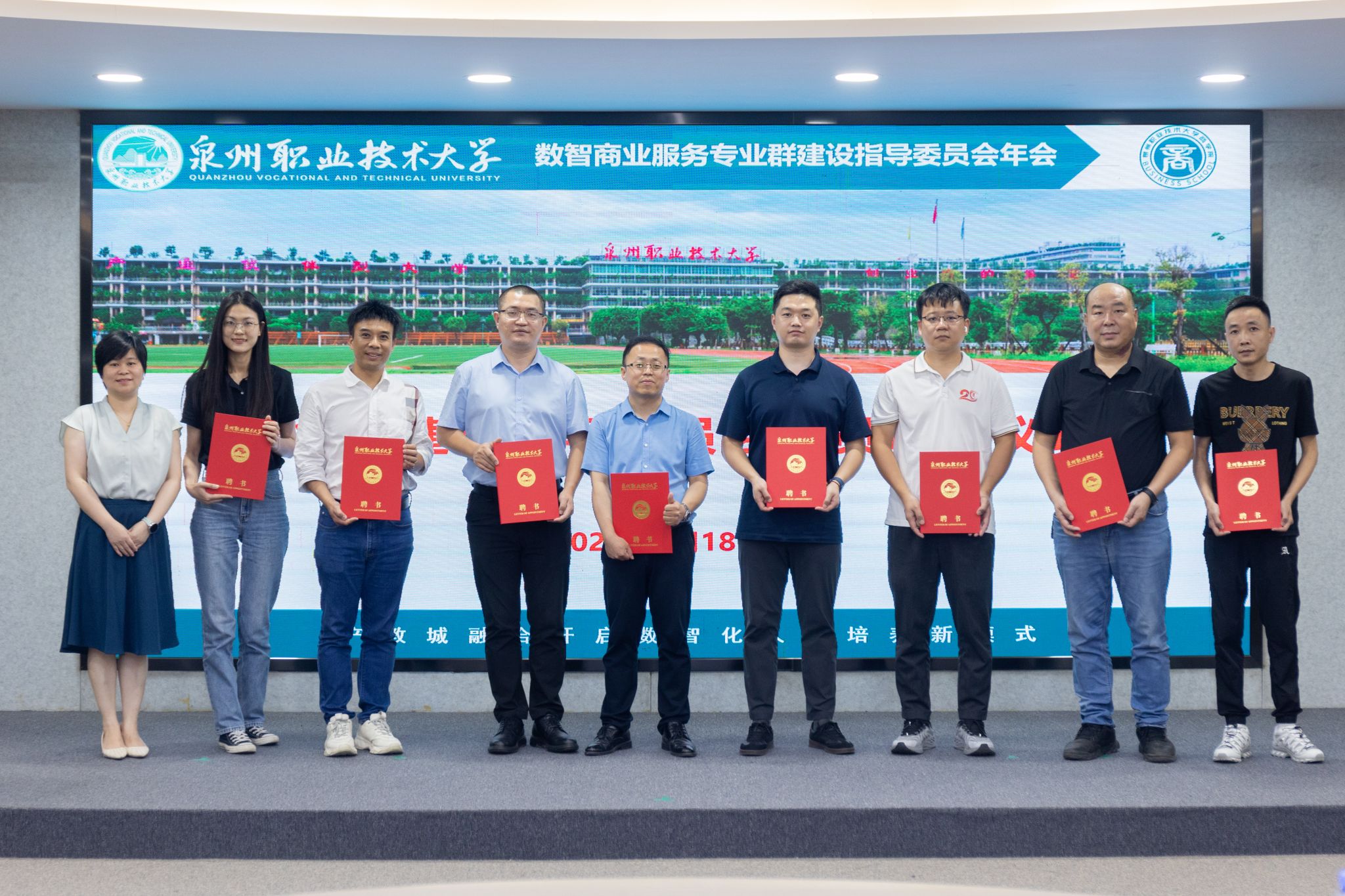 年会现场,举行了专业群建设指导委员会委员增聘仪式,华侨大学旅游学院院长助理殷杰、用友集团新道科技副总裁贾大明受聘为副主任委员,范梦晖、林世斌等10位企业高管受聘为委员。