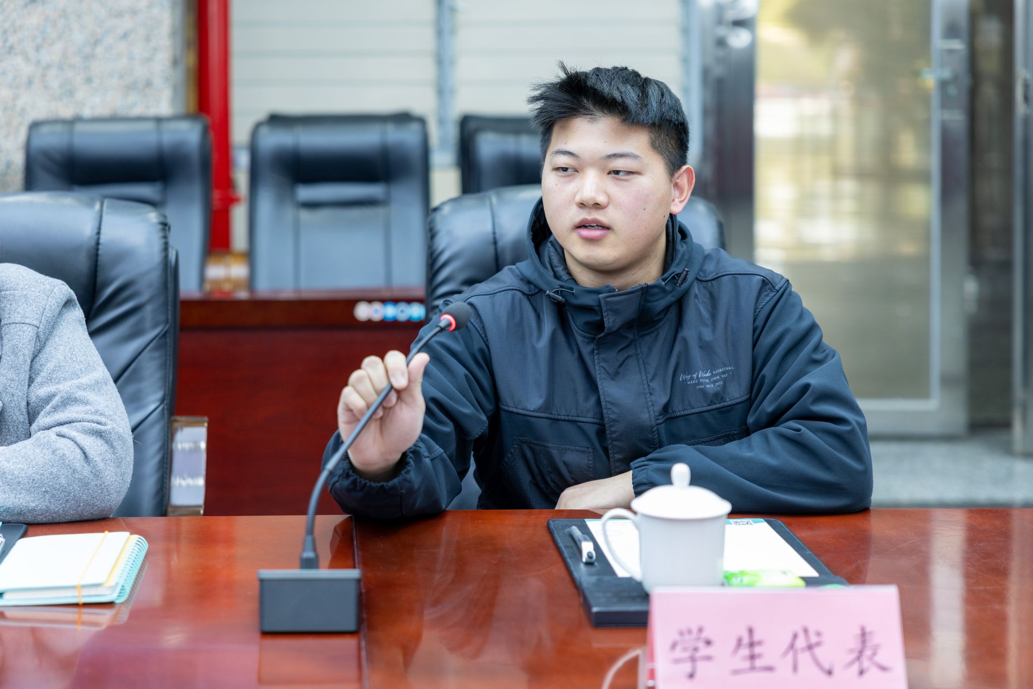 座谈会上,学生代表结合自身实习经历与职业发展规划积极发言,表达了对就业岗位和职业发展空间的期待。陈丽蓉与学生亲切交流,听取学生的想法和建议。