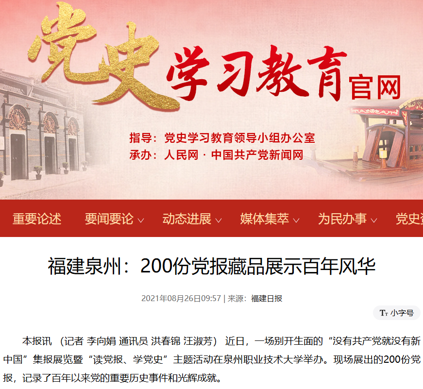 ▲ 党中央党史学习教育官网报道“读党报、学党史”活动