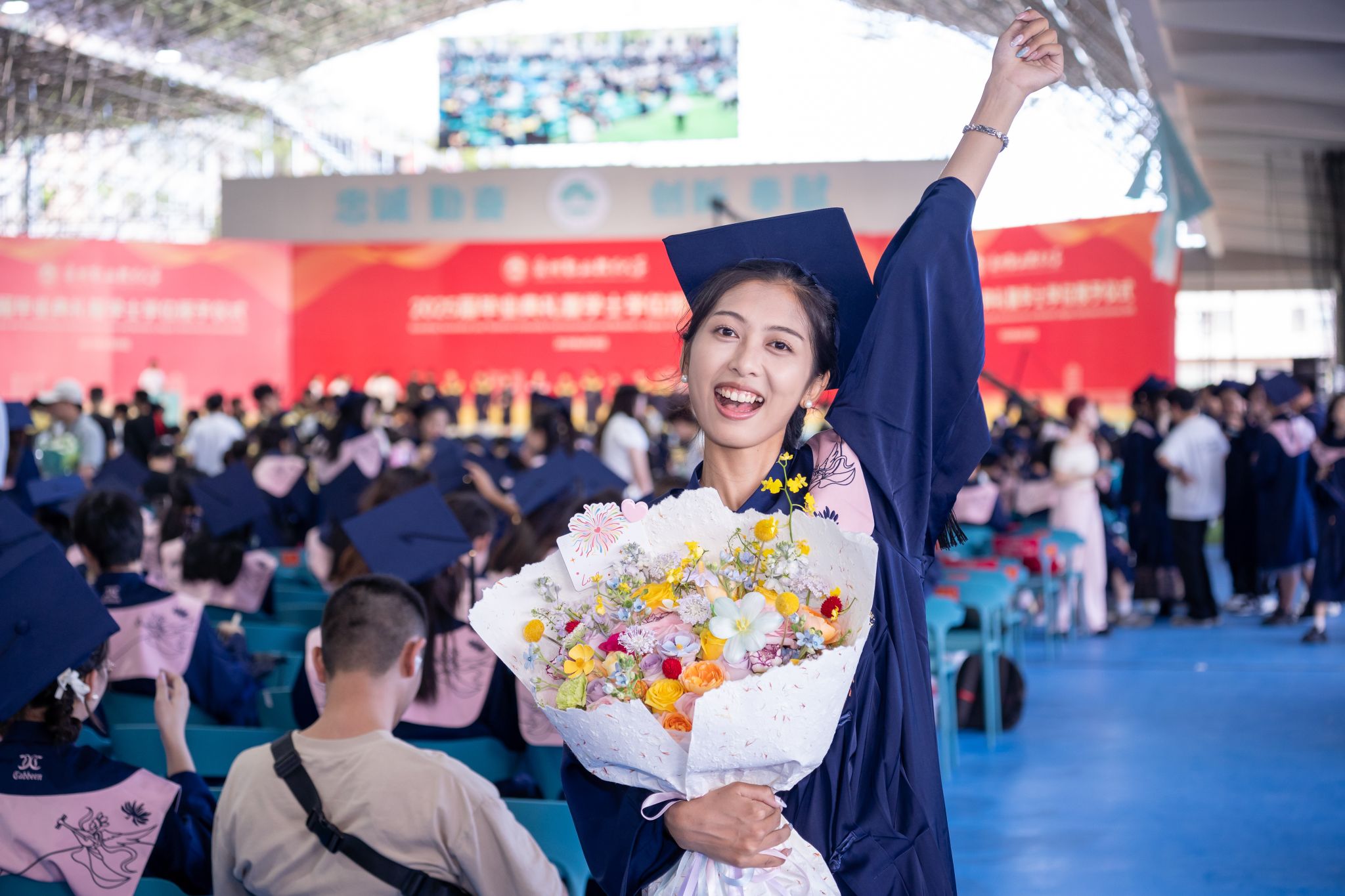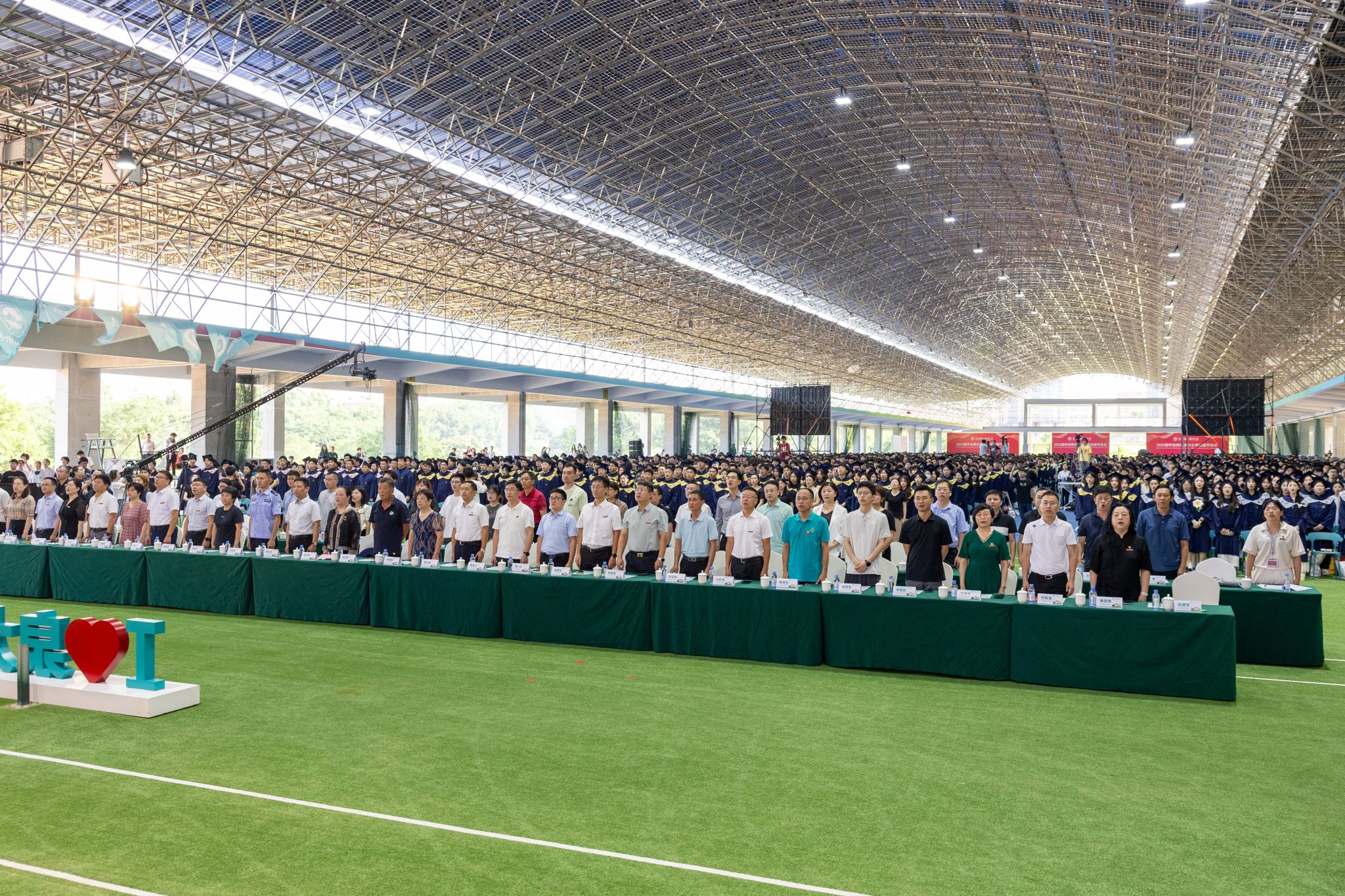 在雄伟的国歌声中,毕业典礼拉开帷幕。