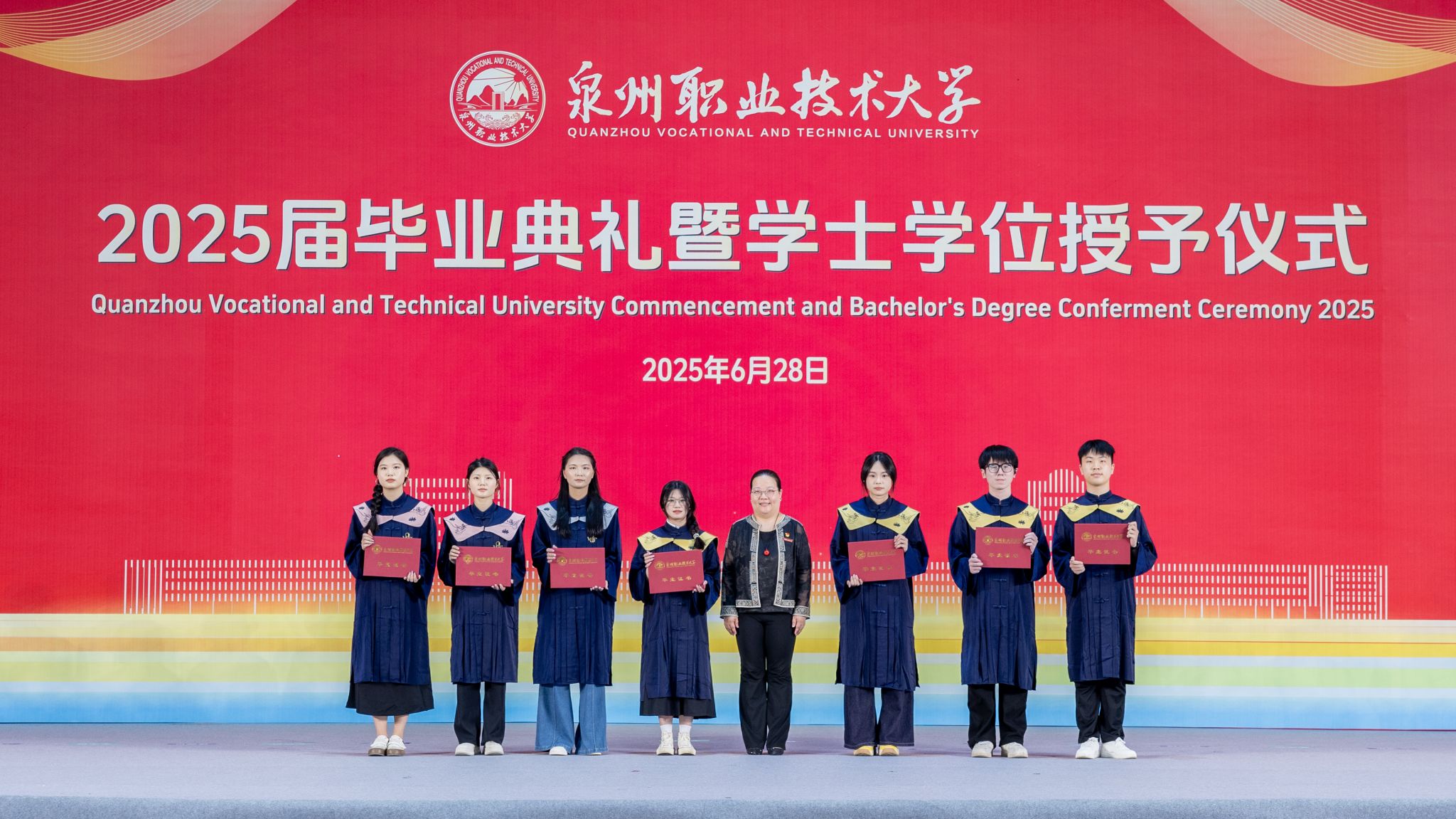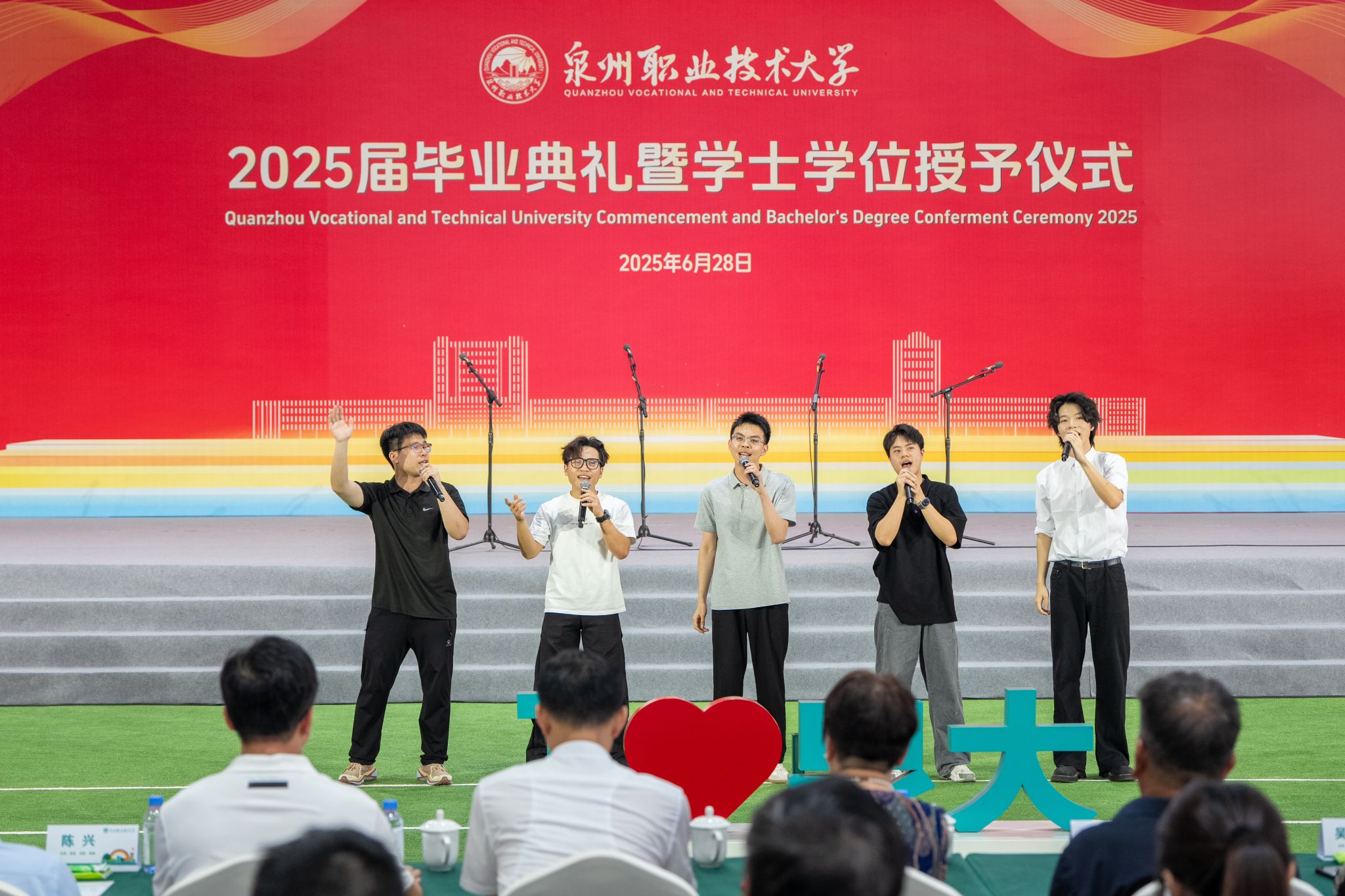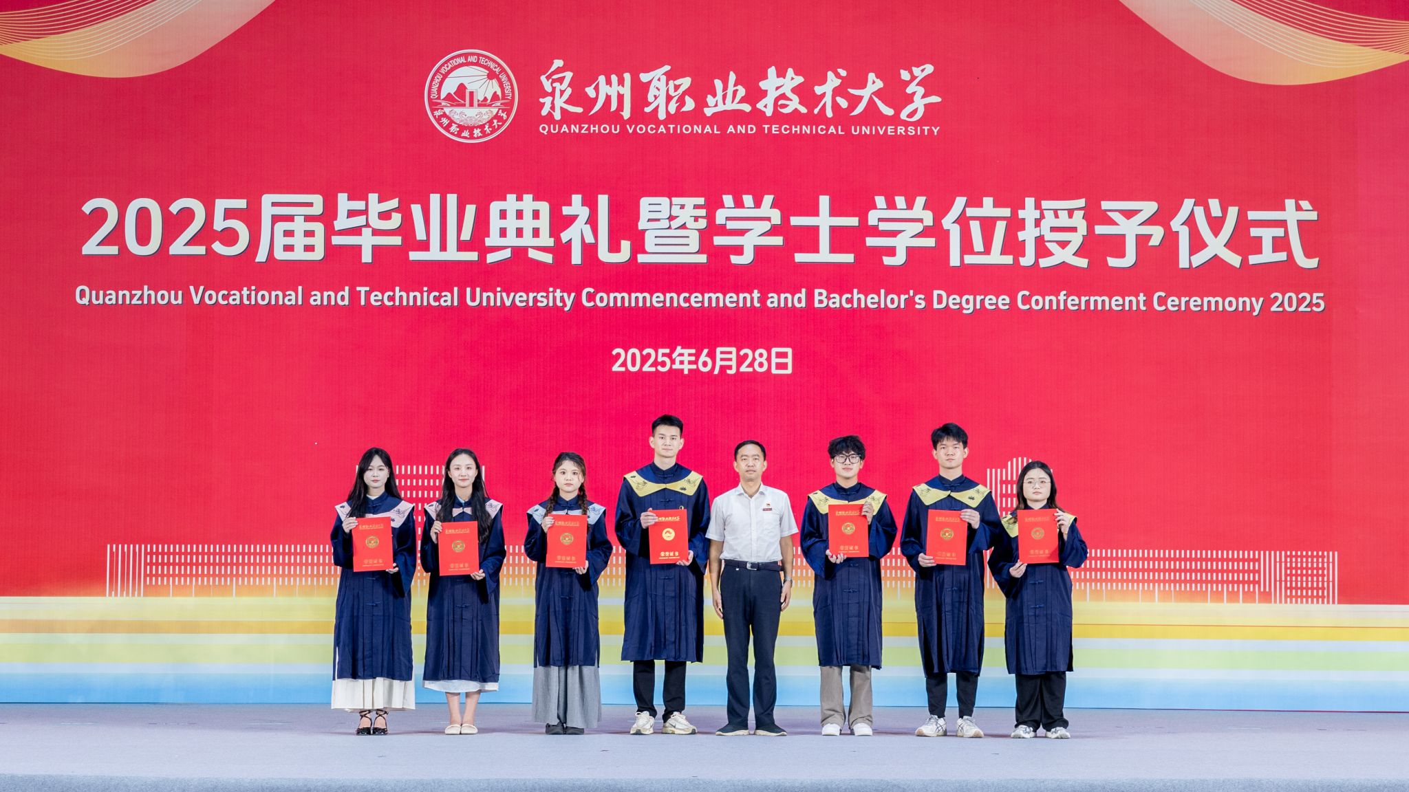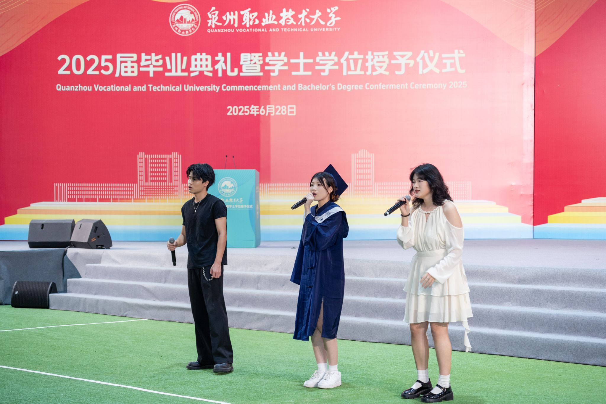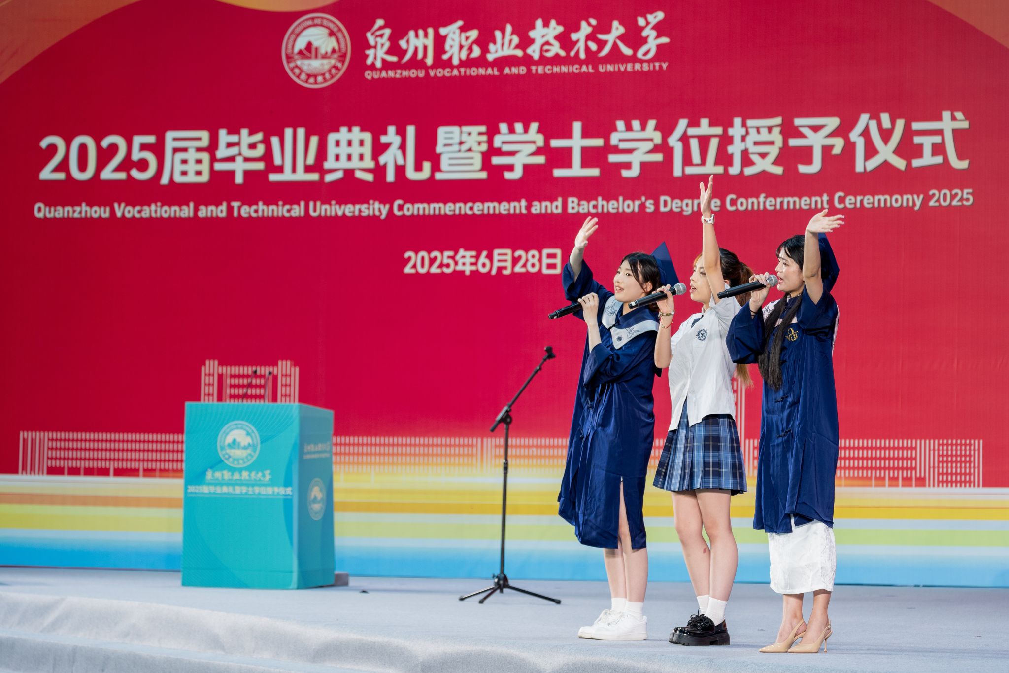 6月28日,泉州职业技术大学2025届毕业典礼暨学士学位授予仪式,在学校新落成的网球场馆隆重举行。3263名学子顺利毕业,在此迎来人生重要里程碑。