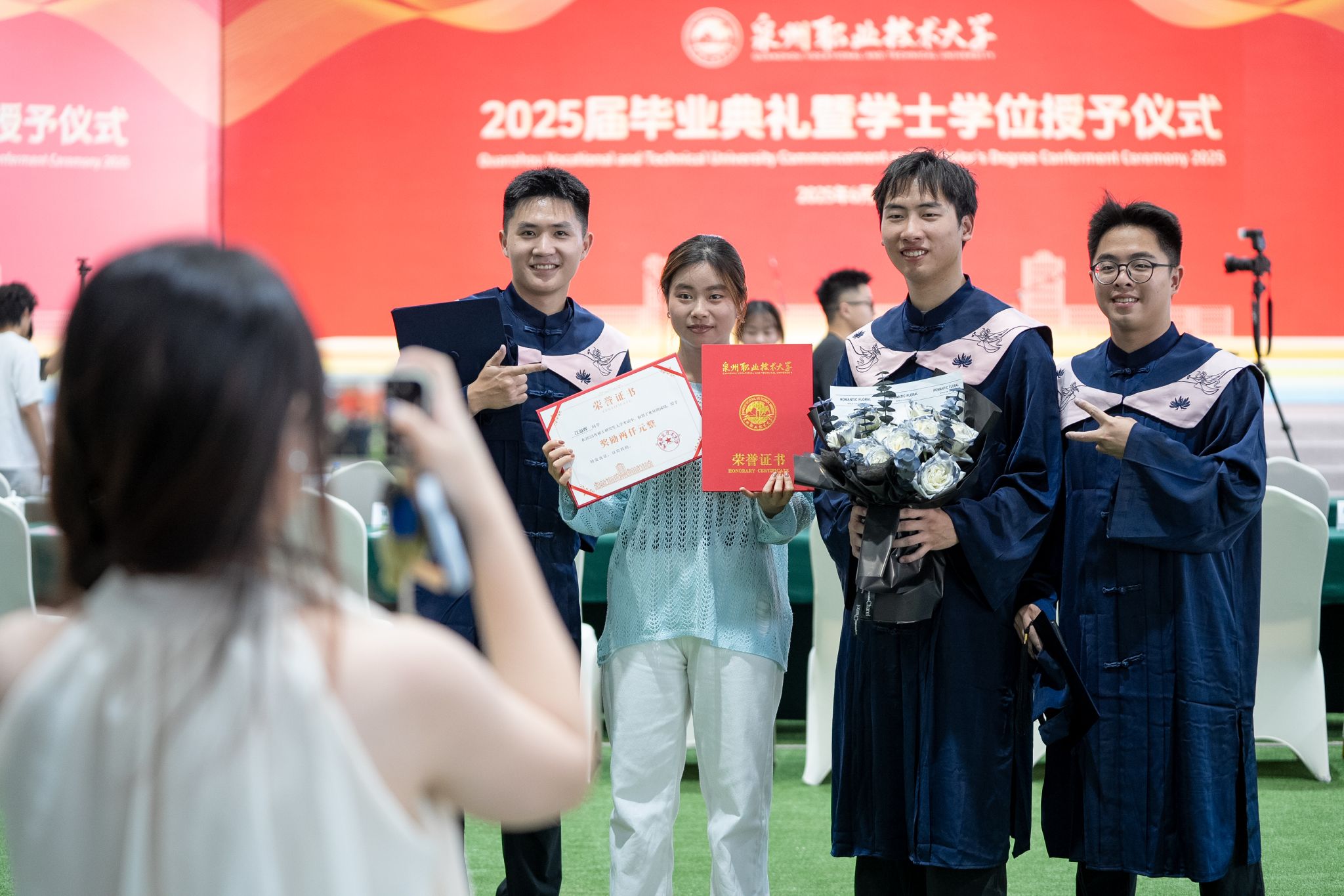 根据《中华人民共和国学位条例》《泉州职业技术大学本科毕业生学士学位授予管理办法》,经学校学位评定委员会审议评定,授予2025届游雨珊等1160名同学工学学士学位;授予韩婷等946名同学管理学学士学位;授予徐佳慧等409名同学教育学学士学位;授予黄培妤等240名同学艺术学学士学位。