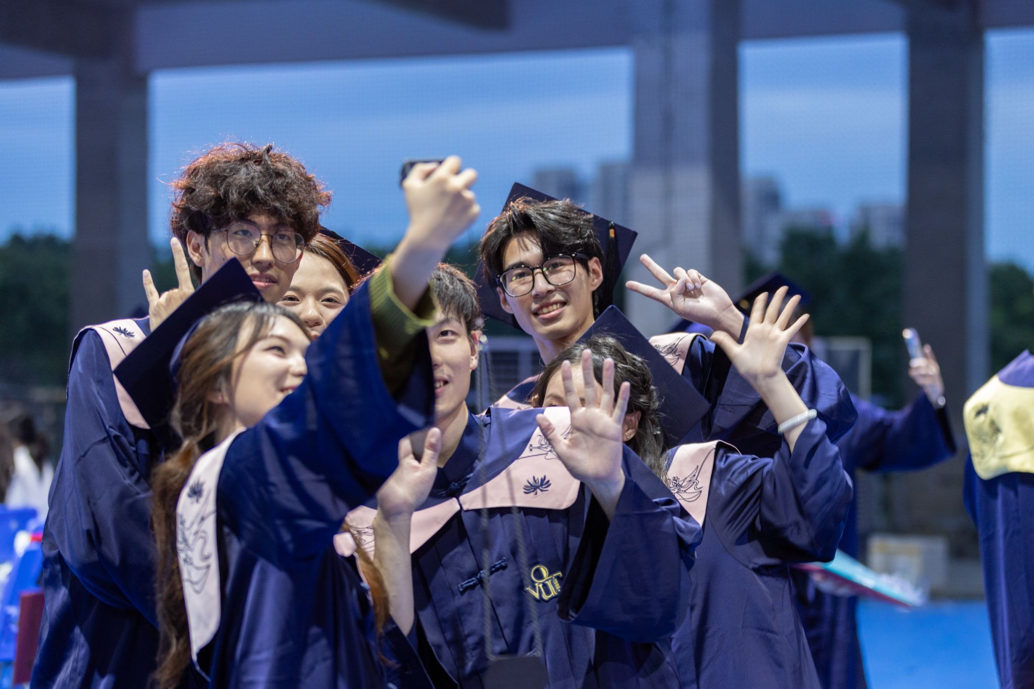 在毕业典礼暨学士学位授予仪式前,同学们重温似水流年,不舍曾经的课堂时光、不舍曾经的宿舍畅聊、不舍图书馆的书声与墨香……他们参加最后一次班会,品尝母校家宴上最美、最甜的美食。