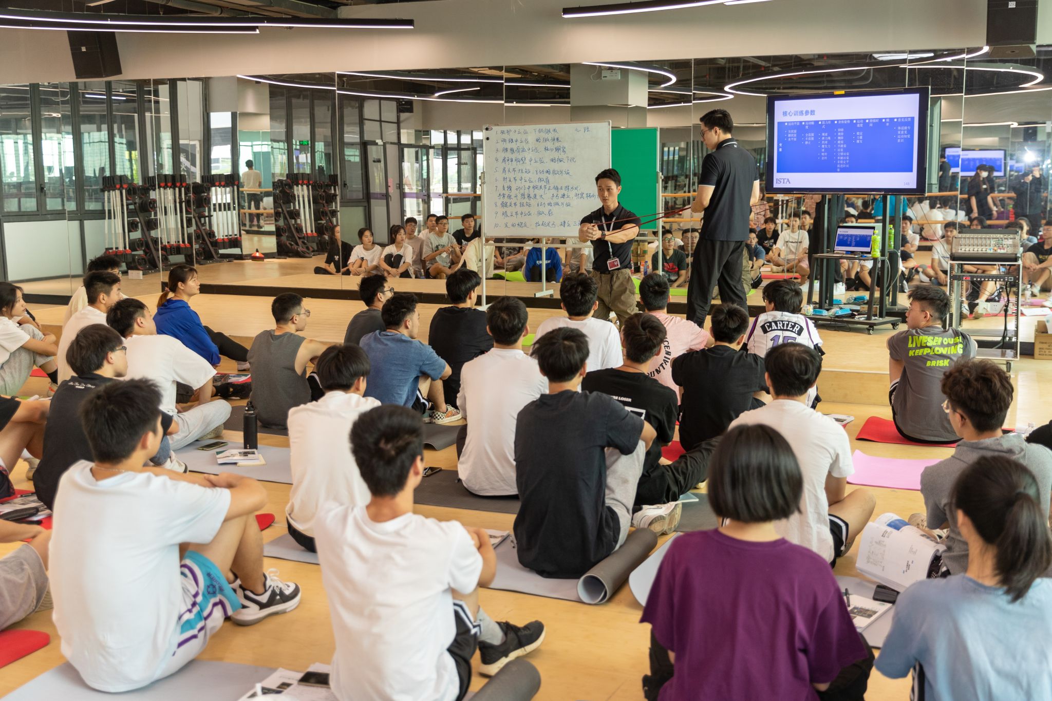 ▲ ISTA国际运动训练学院、前NBA森林狼队媒体运营经理John教授(中)为学生作主题讲座