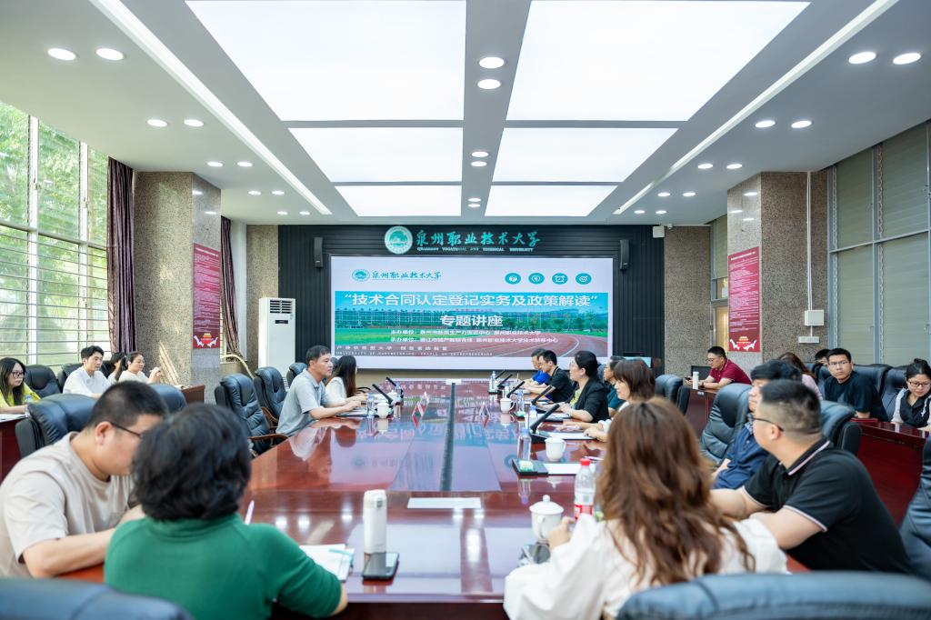 4月23日,我校邀请泉州市新质生产力促进中心综合推广部负责人陈梅菊作题为“技术合同认定登记实务及政策解读”的专题讲座。泉州市新质生产力促进中心主任邱强攀,我校科研处处长任莉娟、处长助理吴丽萍、科研处其他人员及各学院相关老师参加讲座。