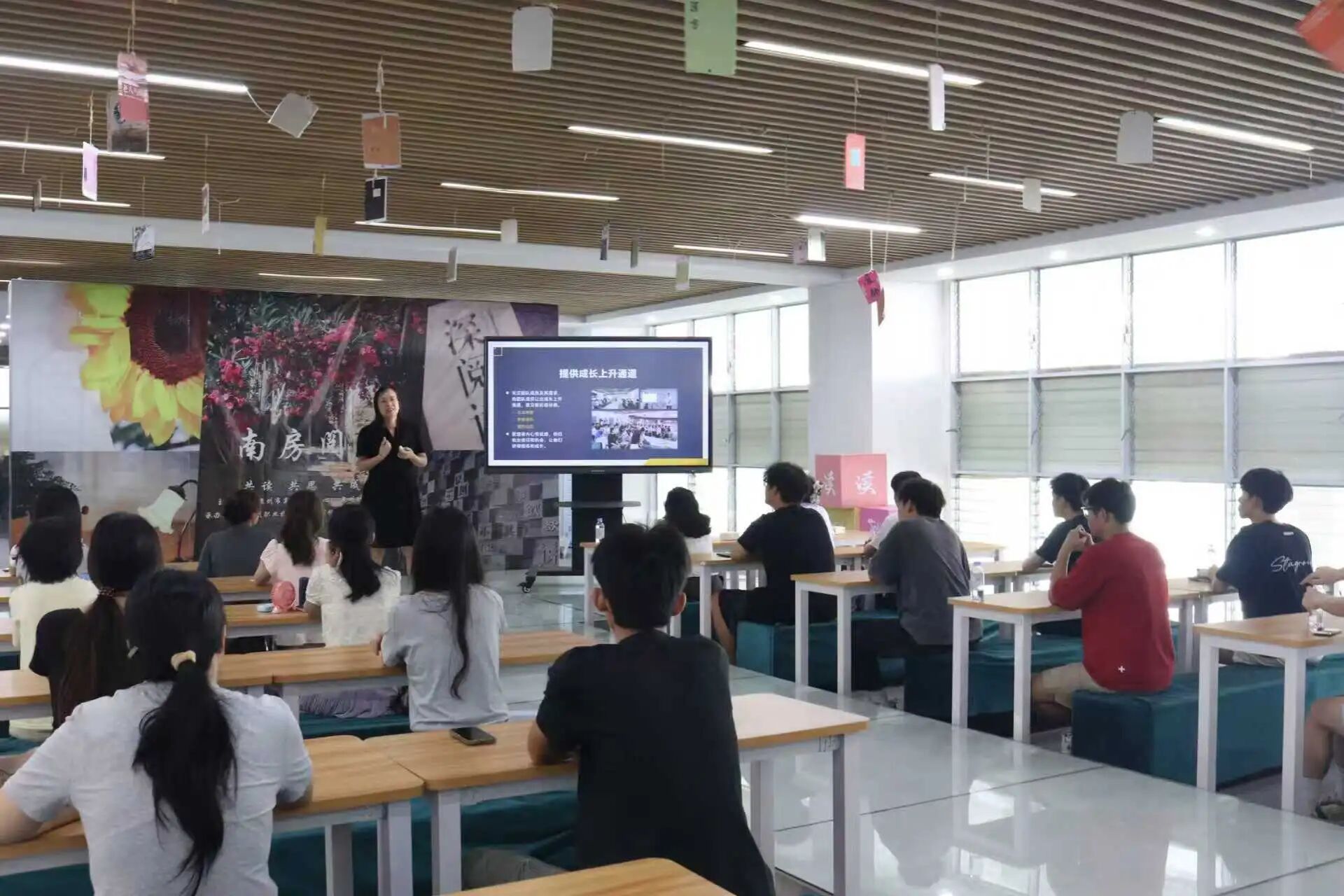 馆内秉持“开放包容”理念,推进“春芽成长计划”、实施阳光工程,关注学生助理馆员工作、学习、生活。通过项目活动组织等增强责任感,团建增进情感,技能培训提升能力,让“主动参与、共同成长”落地。我们构建了志同道合、互助互爱的团队。馆员齐心,共迎挑战、共享成果,正如郑馆长所说:“一群人、一条路、一起成长,心怀感恩,所遇皆美好。”