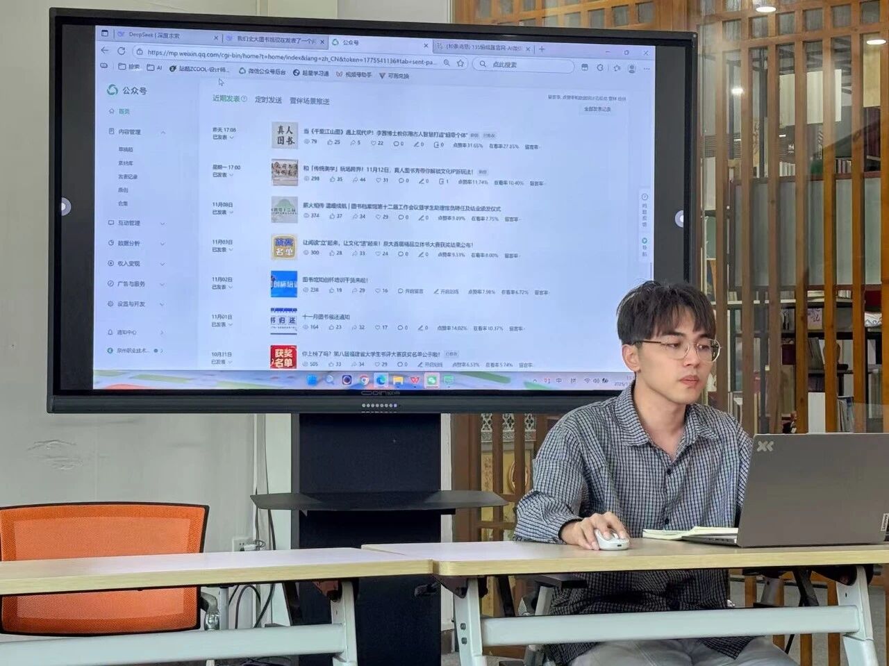 整场培训最核心的精神,是鼓励大家主动“对标”优秀案例,从模仿到超越。“关注全省图书馆的公众号,就是为了‘抄’他们的好东西。”这种直言不讳的分享,道出了新媒体人快速成长的真谛:在大学里,自己摸索、主动学习,才是最重要的能力。