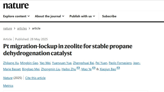鲍晓军、朱海波教授团队在丙烷脱氢铂基催化剂领域经过长达8年的持续攻关,取得了系统性突破。近两个月内先后在国际顶刊《科学》和《自然》上发表研究论文,分别解决了铂基催化剂无氯氧化再生与反应稳定性两大挑战。该系统性研究成果不仅为贵金属催化剂烧结及再生困难这两大催化领域公认难题的解决提供了新思路,也为变革丙烷脱氢技术开辟了新途径。