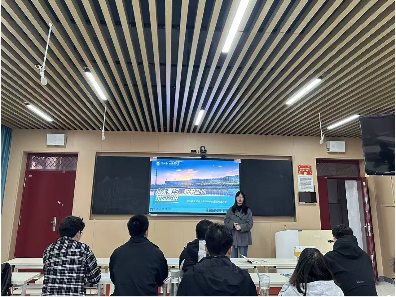 下午,举办泉州职业技术大学专场宣讲会,徐舒瑶老师系统介绍了我校的办学定位、薪资福利与人才培养体系等。