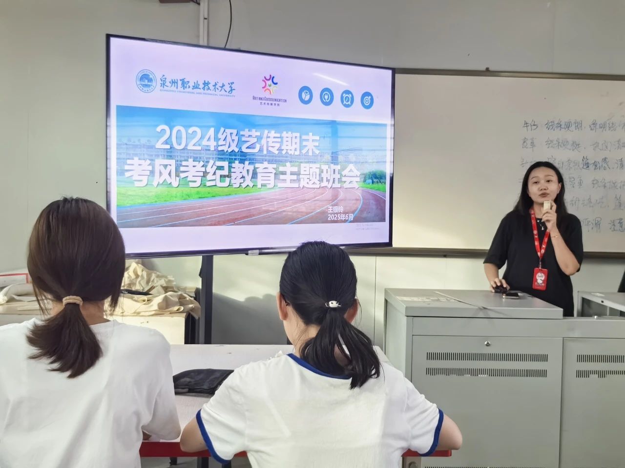 为进一步强化考风考纪,引导学生以诚信态度迎接期末考试,艺术传媒学院于近期面向2022、2023、2024级全体学生召开“温书迎考,诚信考试”主题班会。会议围绕考试安排、复习策略、作弊惩戒措施、教学评价机制及诚信承诺书签署等核心议题展开,旨在构建公平公正的考试环境,深化诚信教育。