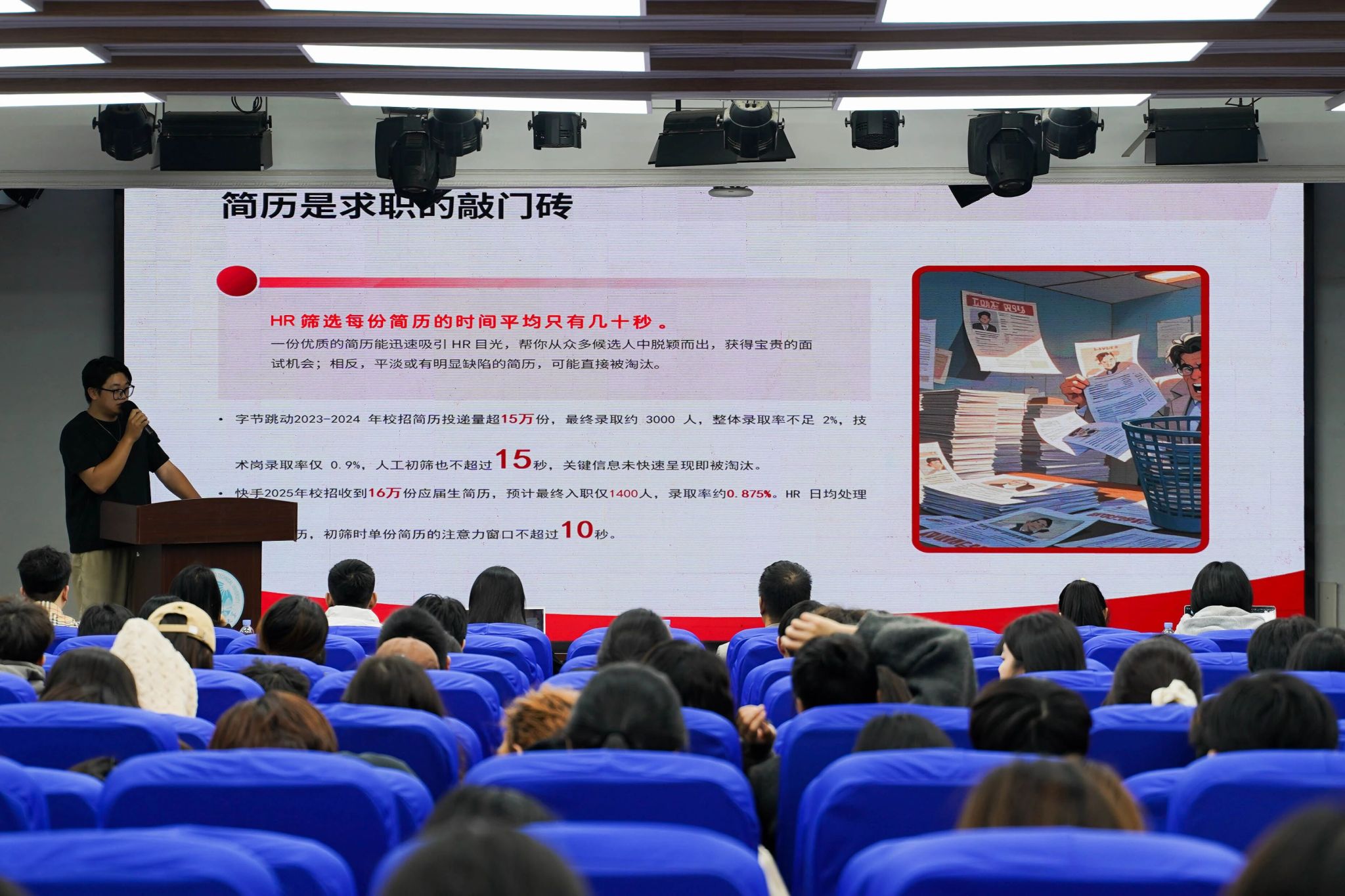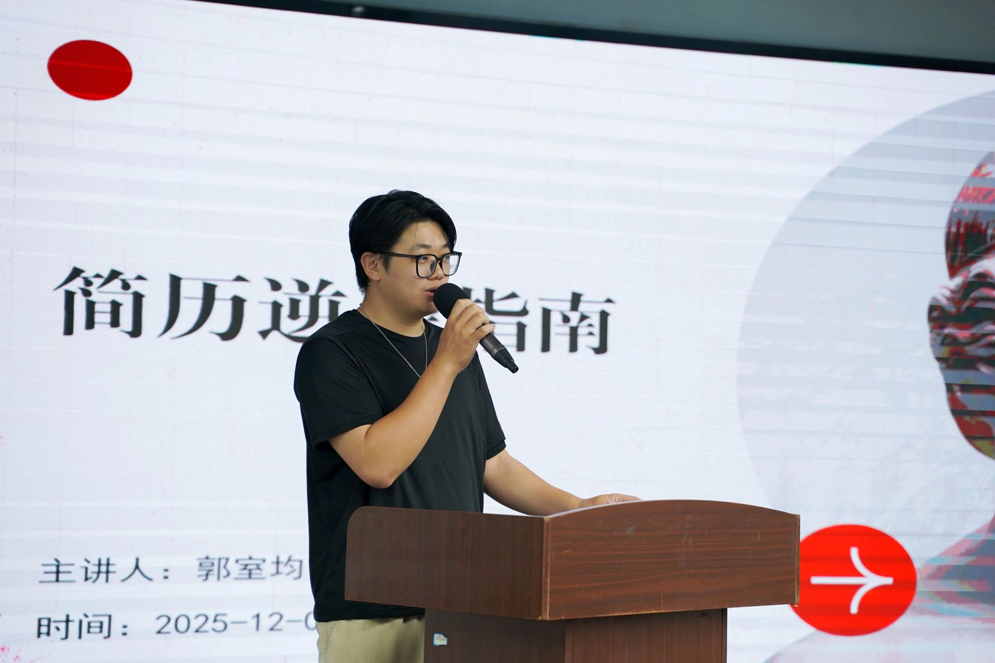 龚岩峰老师分享结束后,由郭室均老师带来了简历撰写与美化的实用干货分享。郭老师结合了行业招聘需求,细致讲解了简历的核心要素、撰写技巧以及美化要点,帮助同学们掌握打造优质简历的方法,为未来求职做好充分准备。
