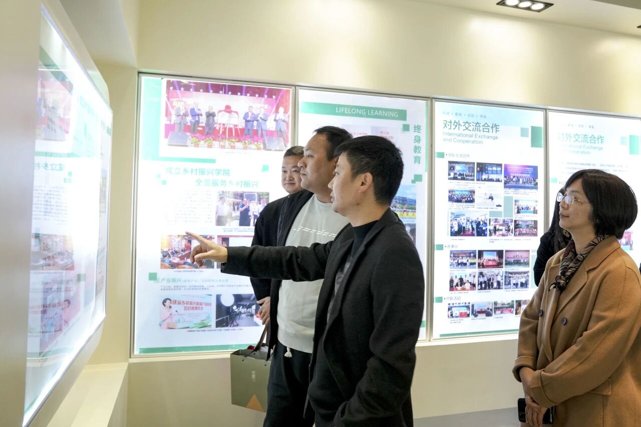 林昌榕书记一行首先走进我校校史馆,通过文献史料、实物展陈及数字化演示等多元载体,系统了解我校办学定位、发展沿革、学科建设成果及服务区域经济社会发展的核心贡献,对我校“产教融合、校企合作”的职业教育特色给予充分肯定。随后,林昌榕书记一行深入艺术传媒学院实训中心、特色工作室及成果展厅,观摩专业学生作品、实训项目及学科竞赛获奖成果,详细问询学院专业设置逻辑、课程体系构建、实践教学模式及师资队伍建设等关键信息,对学院鲜明的专业特色与扎实的教学成效表示赞赏。