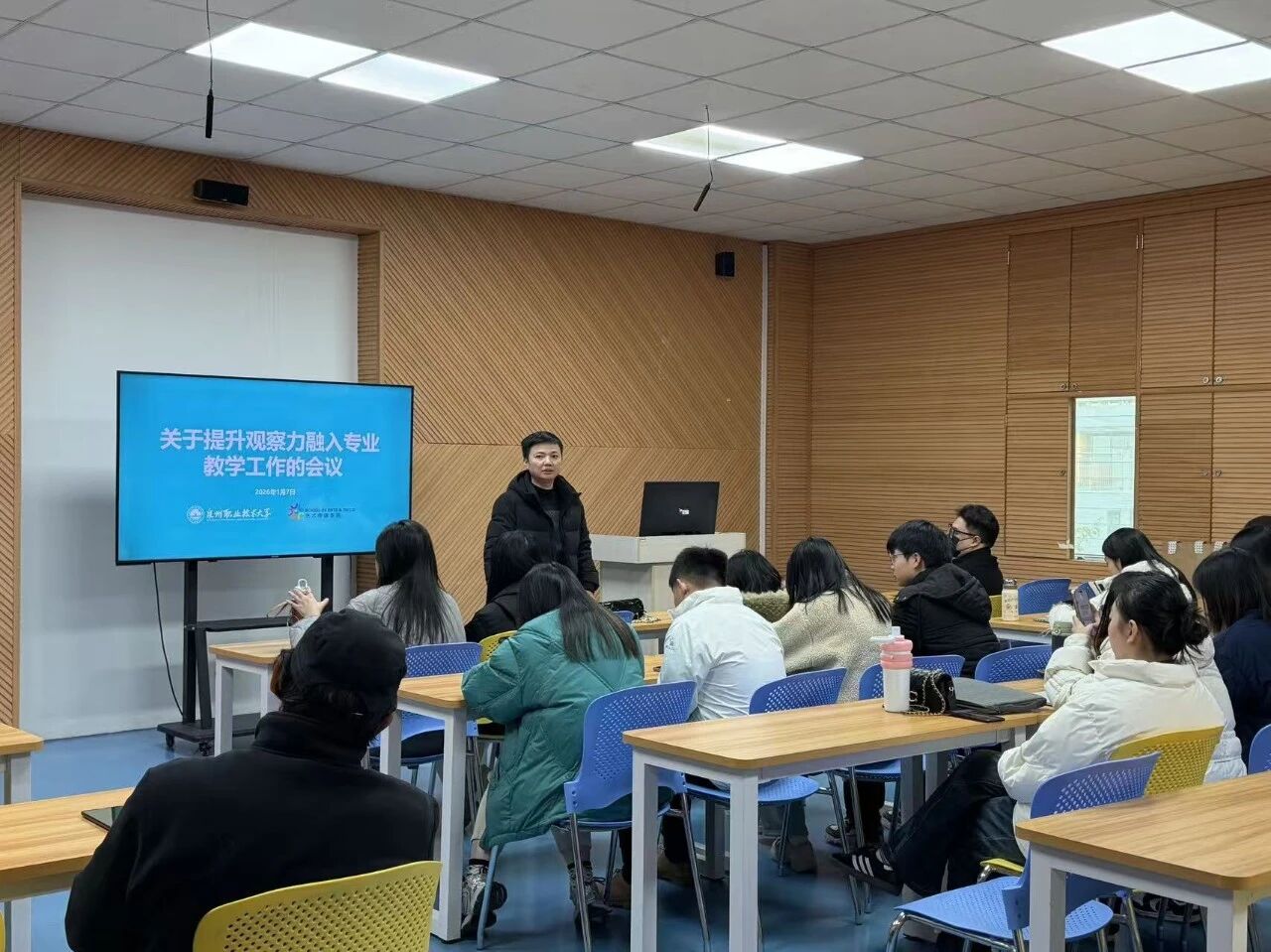 为落实“5号命令”强化师生观察力、杜绝行走使用手机的核心要求,推动观察力培养与专业教学融合,保障2026年春季学期教学质量,艺术传媒学院于近日组织全体教师召开“提升观察力融入专业教学”专题研讨会。会议由涂永坚书记主持,全员教师参会,围绕“5号命令”精神领会、教学融合路径等核心议题研讨,凝聚共识、明确方向。