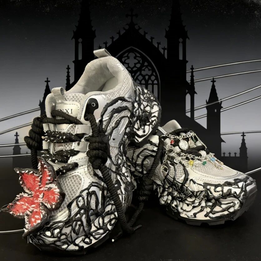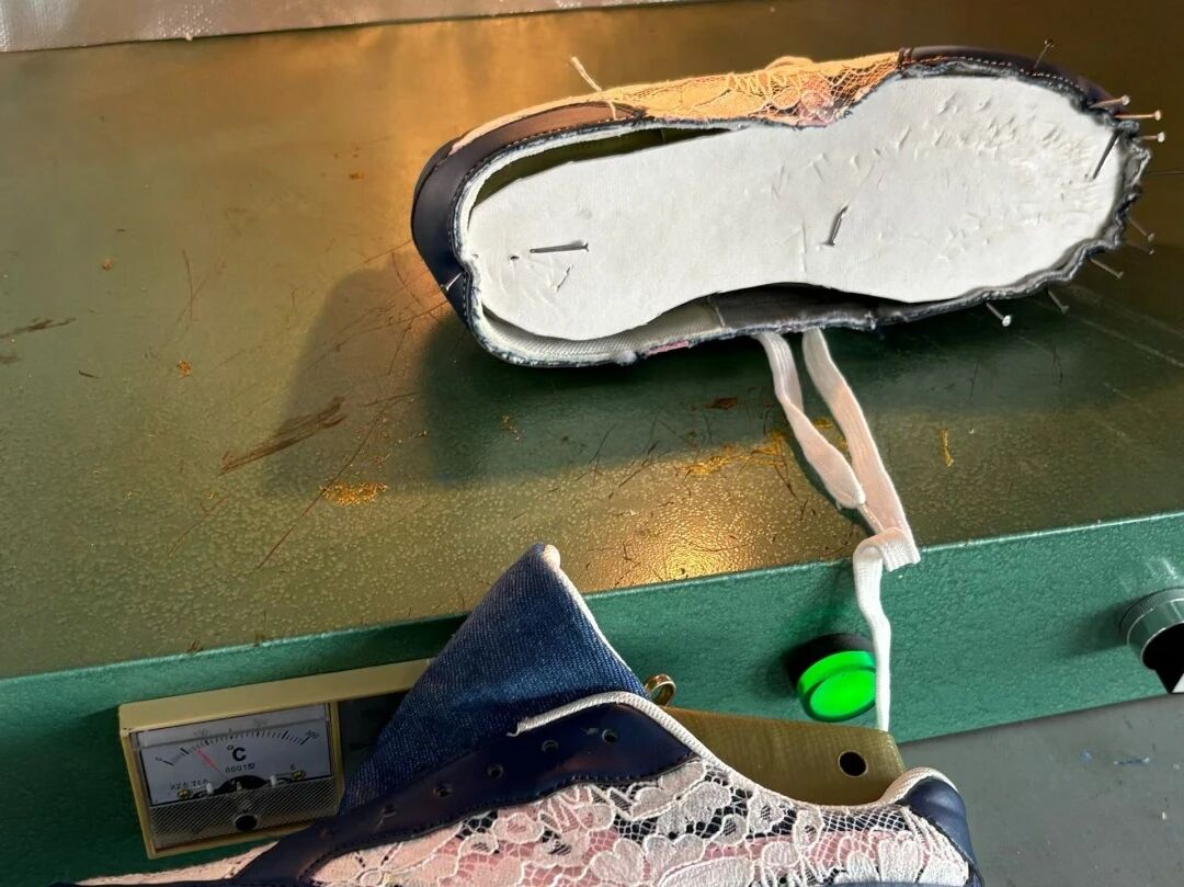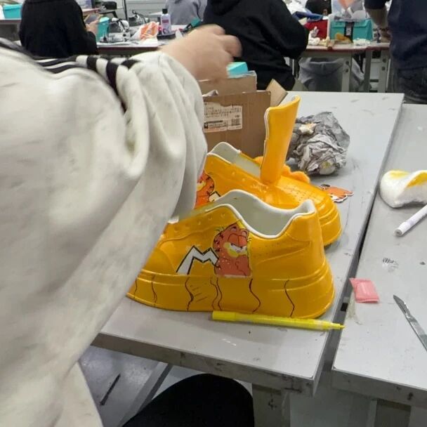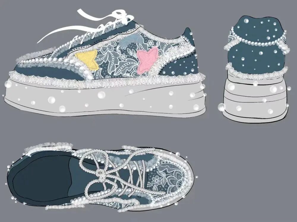 该课程由工艺美术专业主任李伊凇老师主讲,以“工艺精准化、设计可视化、作品个性化”为目标,设置鞋靴小挂件制作、基础款式电脑效果图绘制等实训项目。课程将传统手工技艺与AI放样、3D建模、动态渲染等数字技术深度融合,引导学生从草图构思到成品落地的完整设计流程。例如,在球鞋改造项目中,学生需先通过手工拆解分析鞋体结构,再利用数字工具优化设计方案,最终完成实体改造,实现“创意-技术-工艺”闭环。