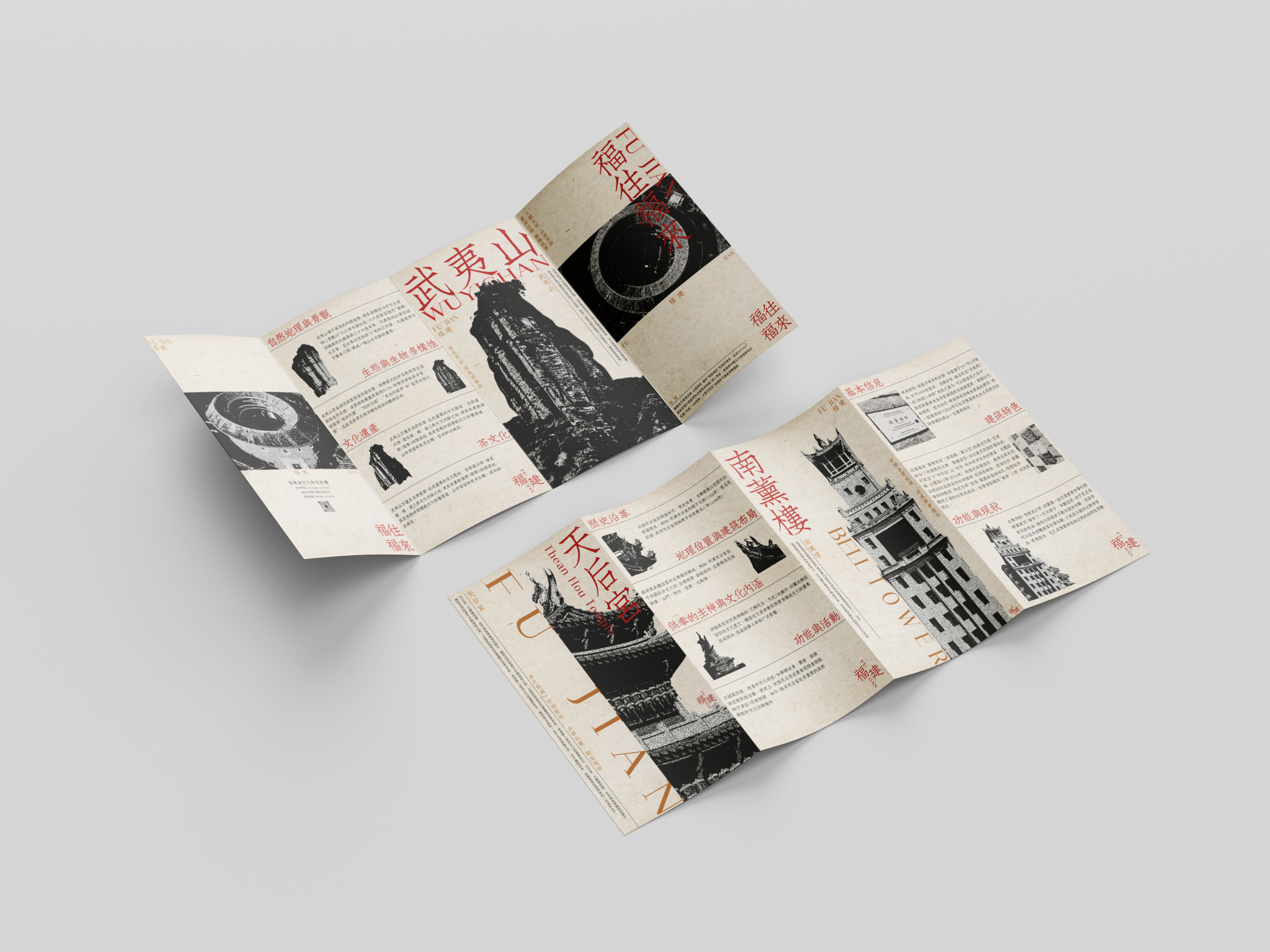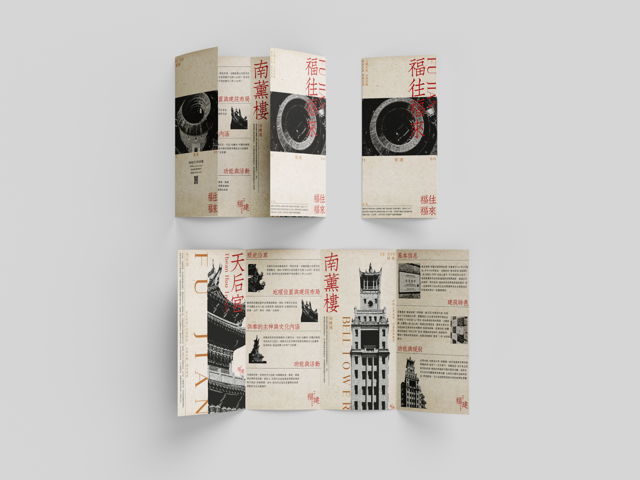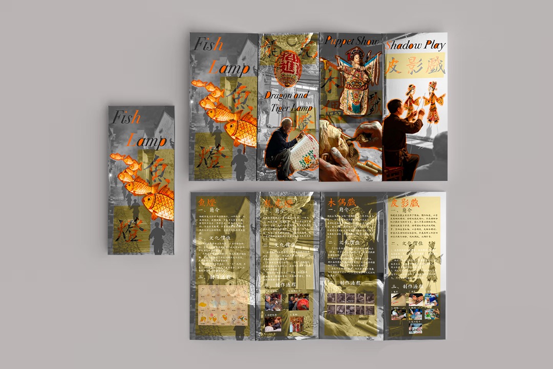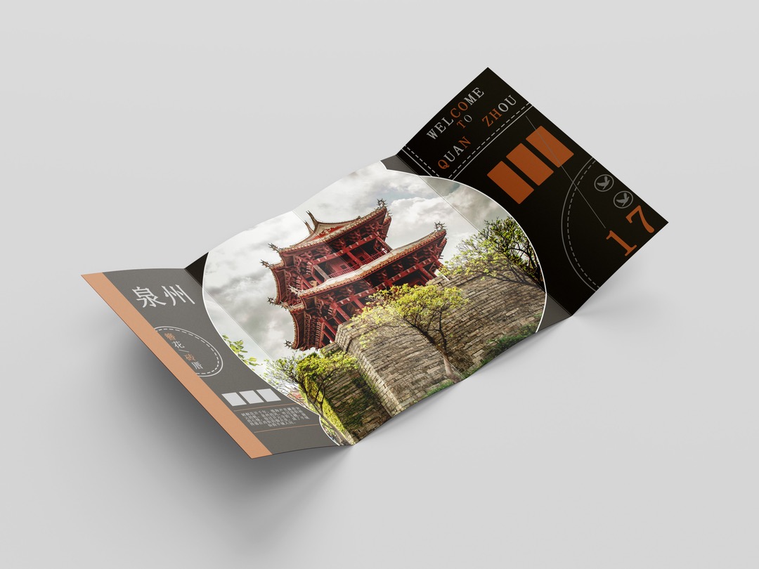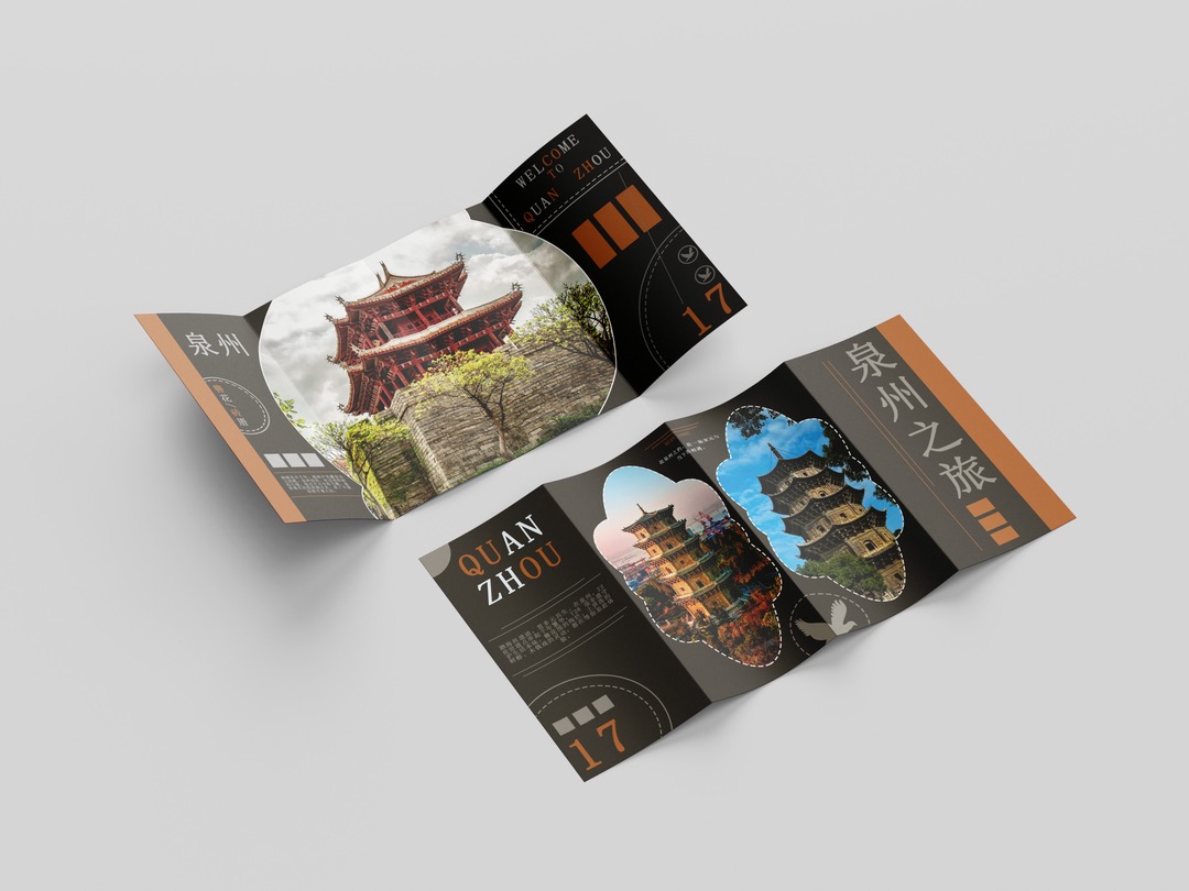 折页设计聚焦福建非遗文化推广和福建文旅形象宣传,在多重折叠中构建文化阅读动线,让历史脉络在层层展开中自然流淌。整合"全福游"品牌与在地特色,在山海交融的地理叙事与实用线路信息间寻找平衡。每一道折痕都是精心设计的停顿,每一次展开都是惊喜的 reveal。