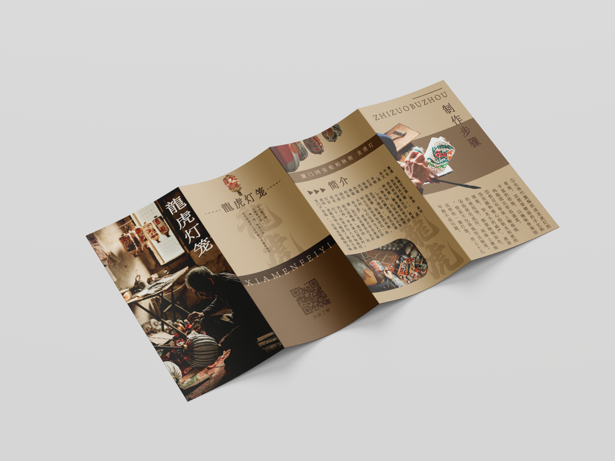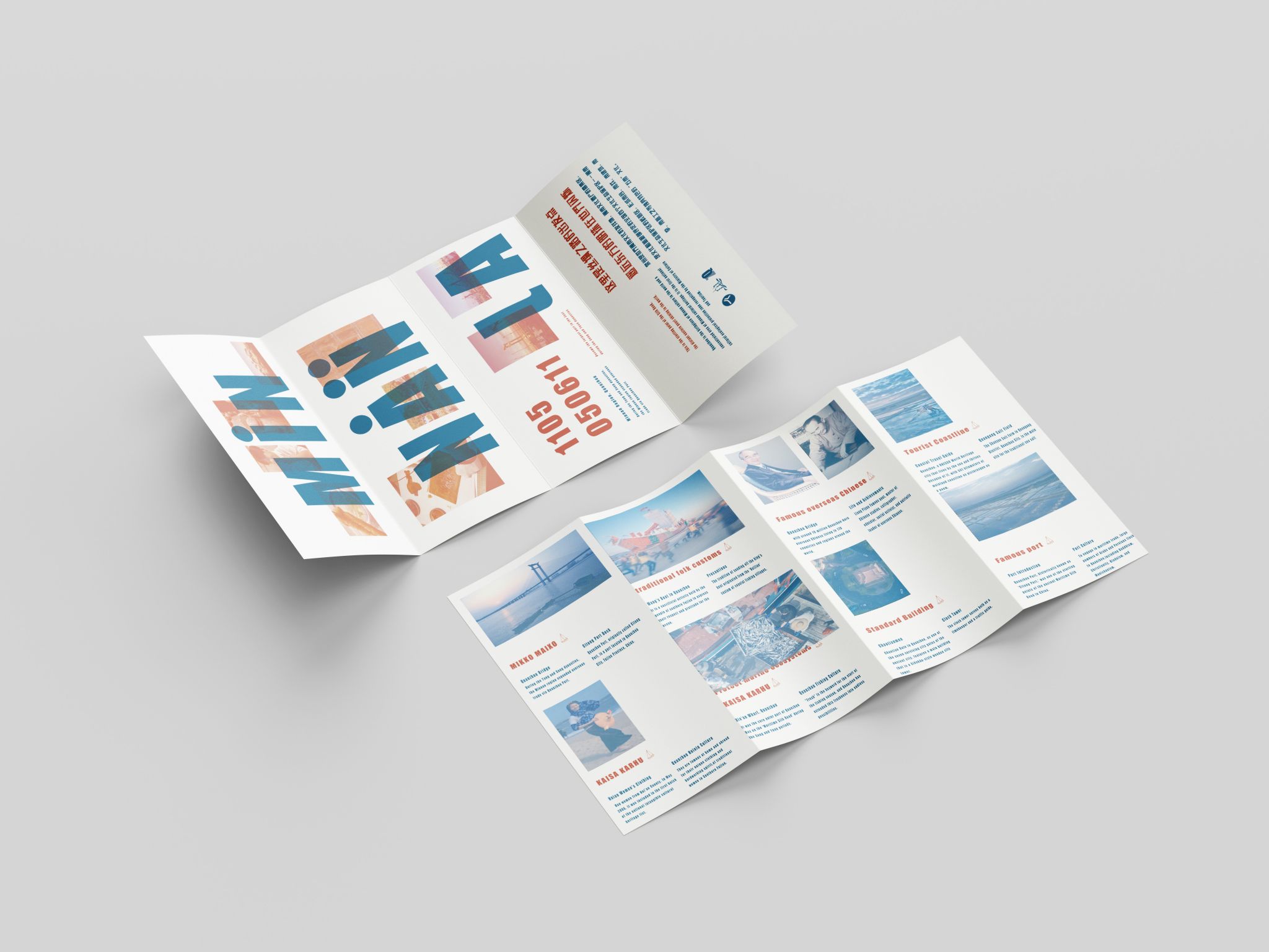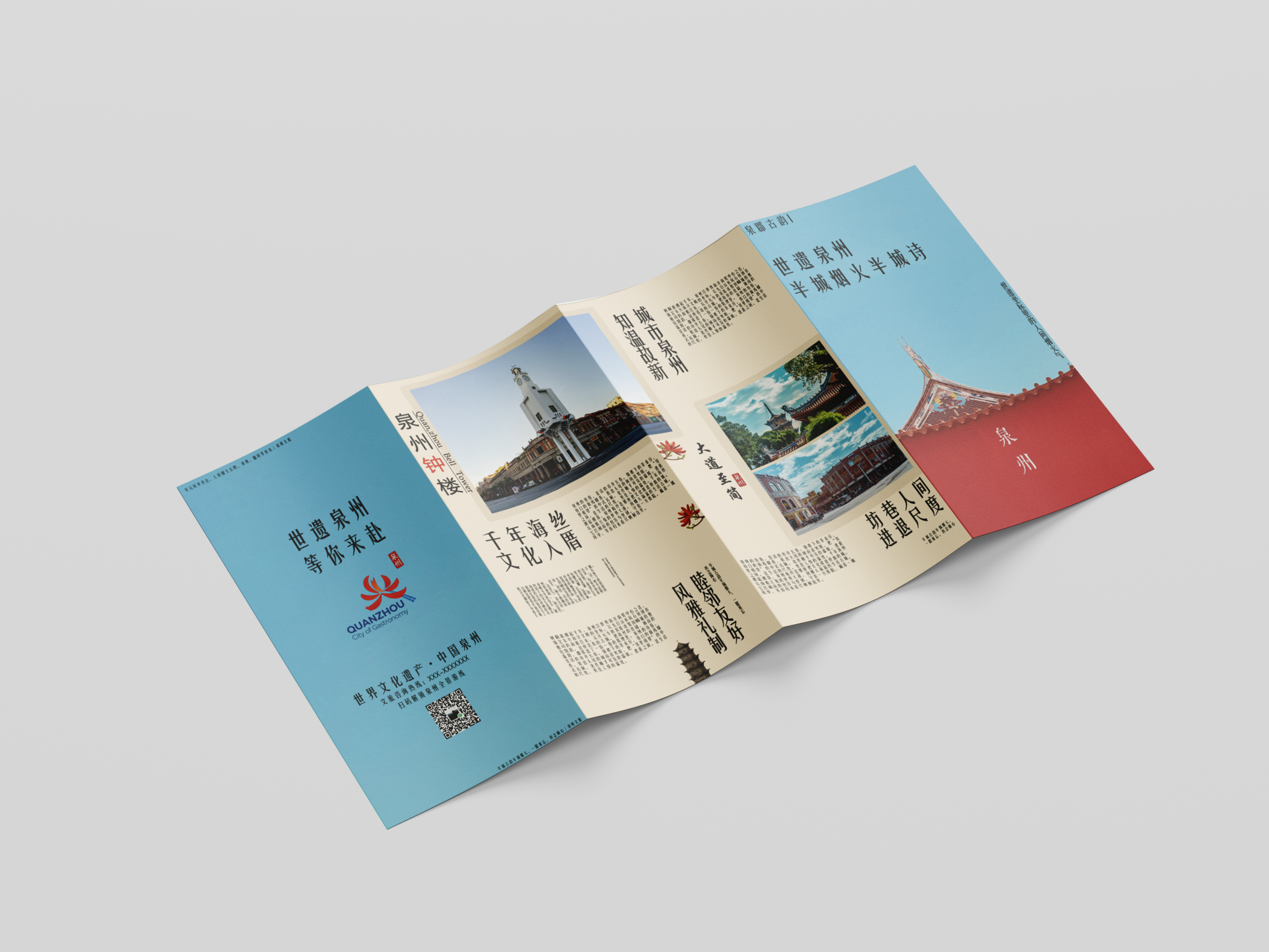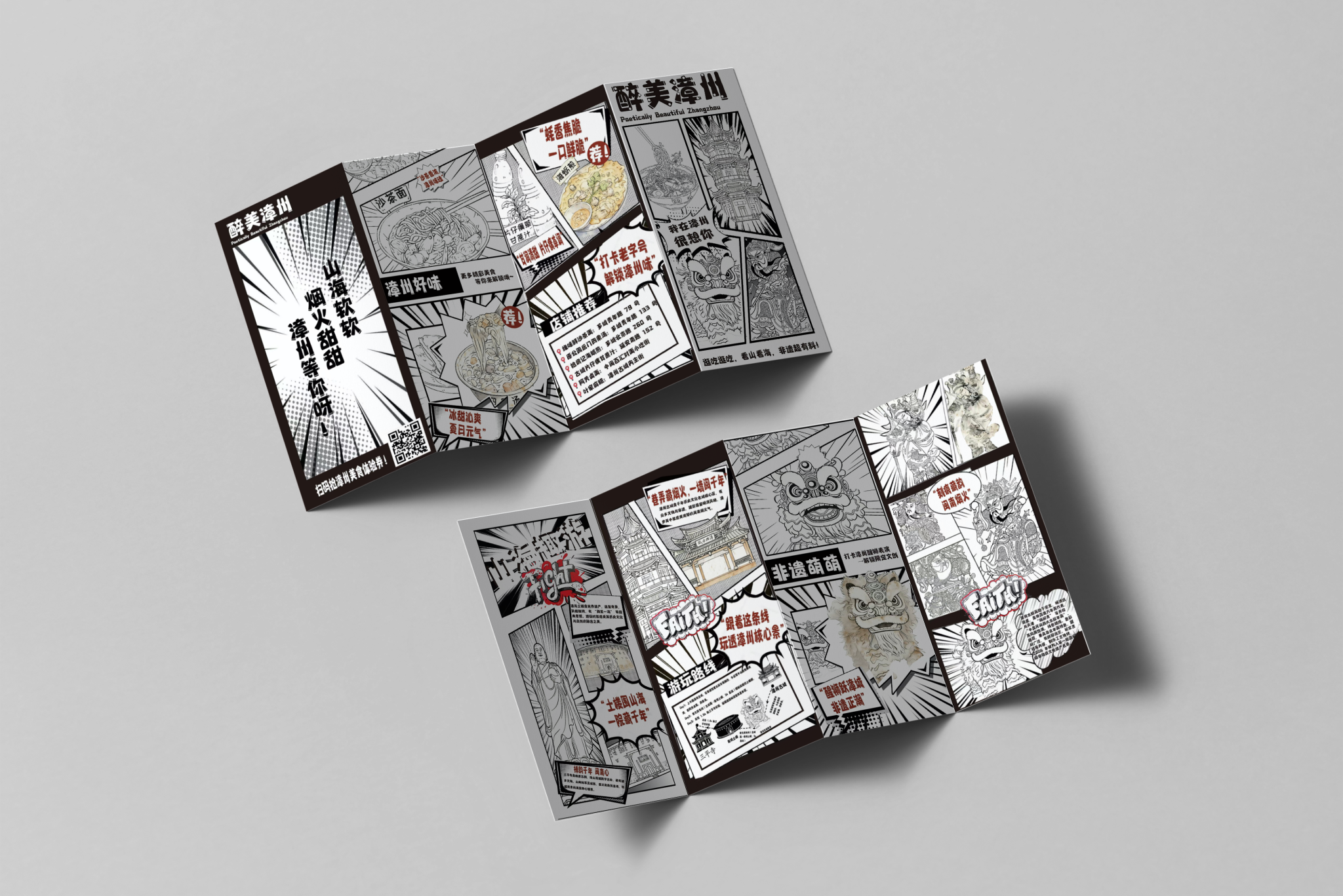 折页设计聚焦福建非遗文化推广和福建文旅形象宣传,在多重折叠中构建文化阅读动线,让历史脉络在层层展开中自然流淌。整合"全福游"品牌与在地特色,在山海交融的地理叙事与实用线路信息间寻找平衡。每一道折痕都是精心设计的停顿,每一次展开都是惊喜的 reveal。