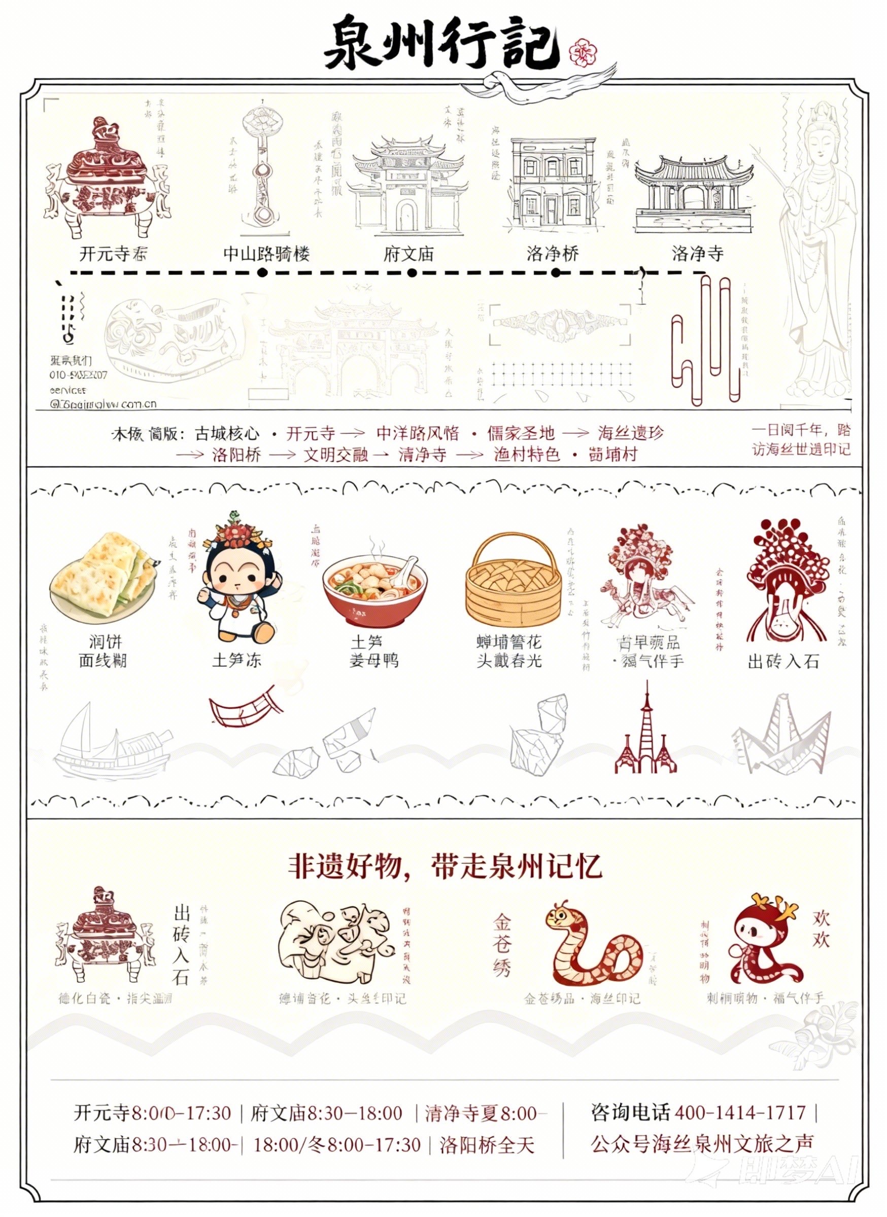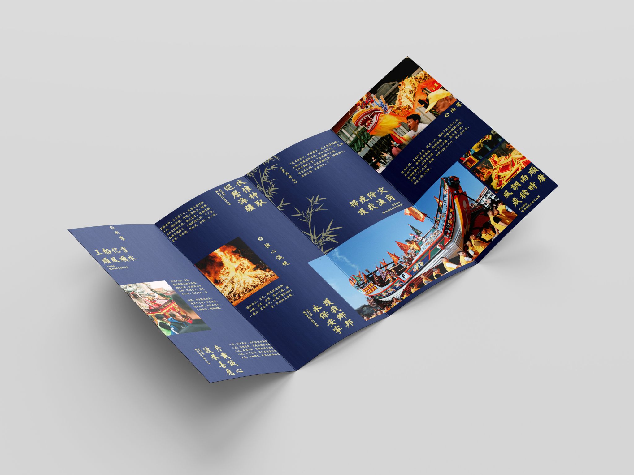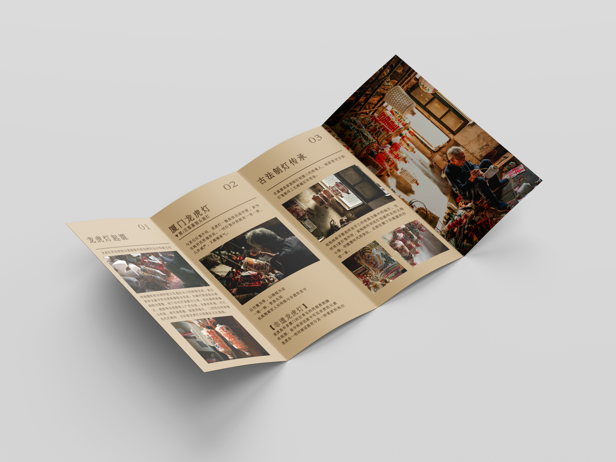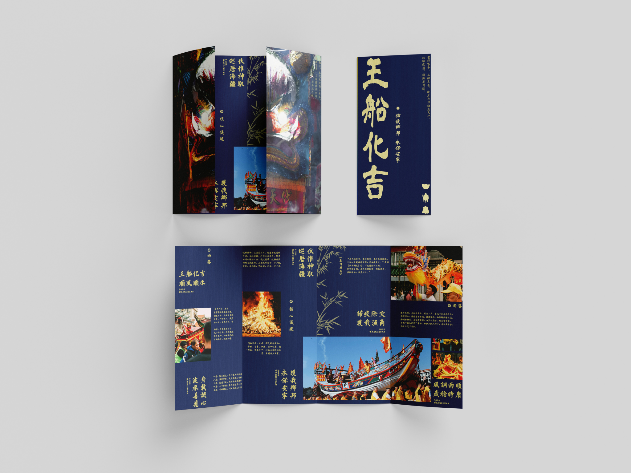 折页设计聚焦福建非遗文化推广和福建文旅形象宣传,在多重折叠中构建文化阅读动线,让历史脉络在层层展开中自然流淌。整合"全福游"品牌与在地特色,在山海交融的地理叙事与实用线路信息间寻找平衡。每一道折痕都是精心设计的停顿,每一次展开都是惊喜的 reveal。