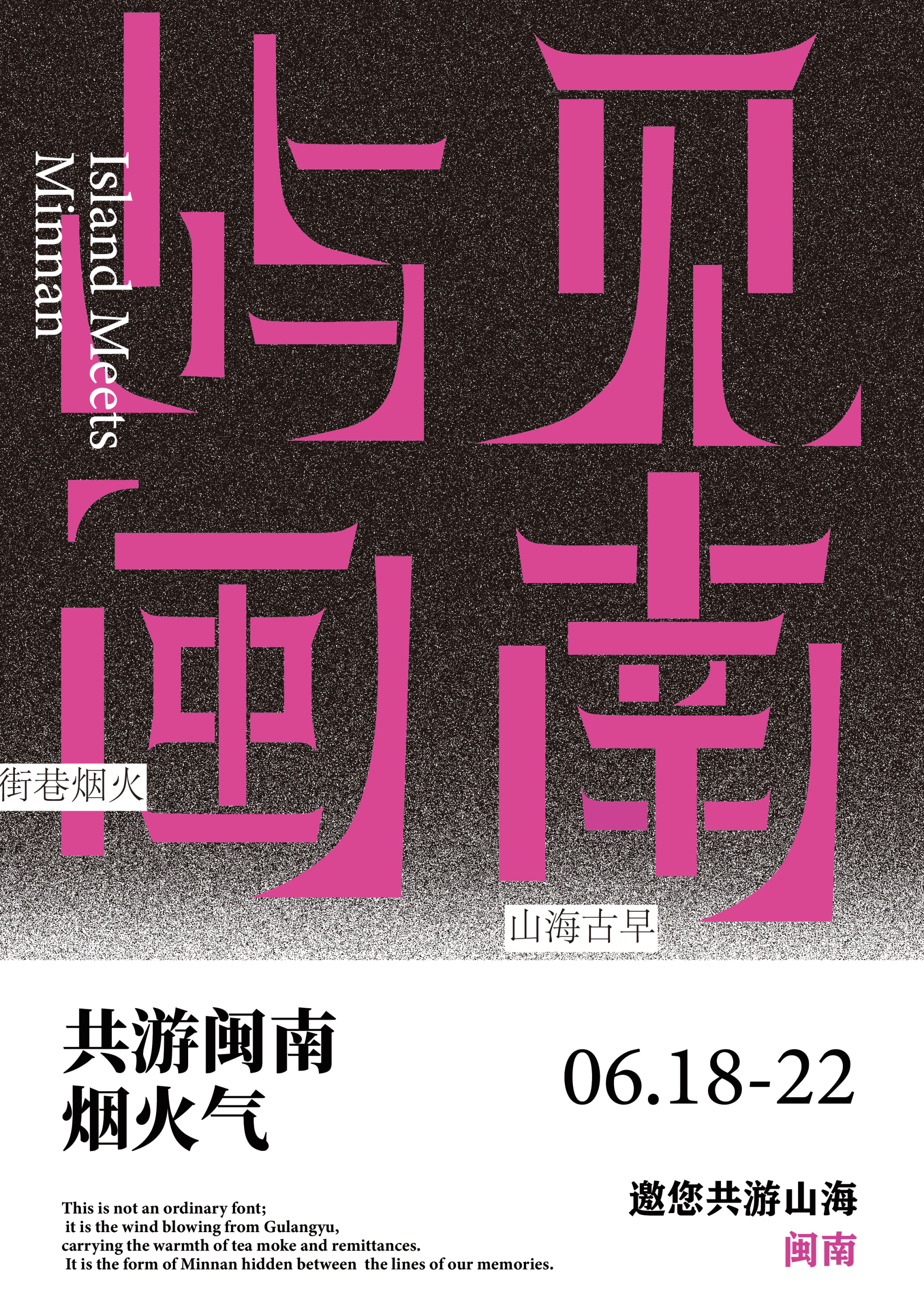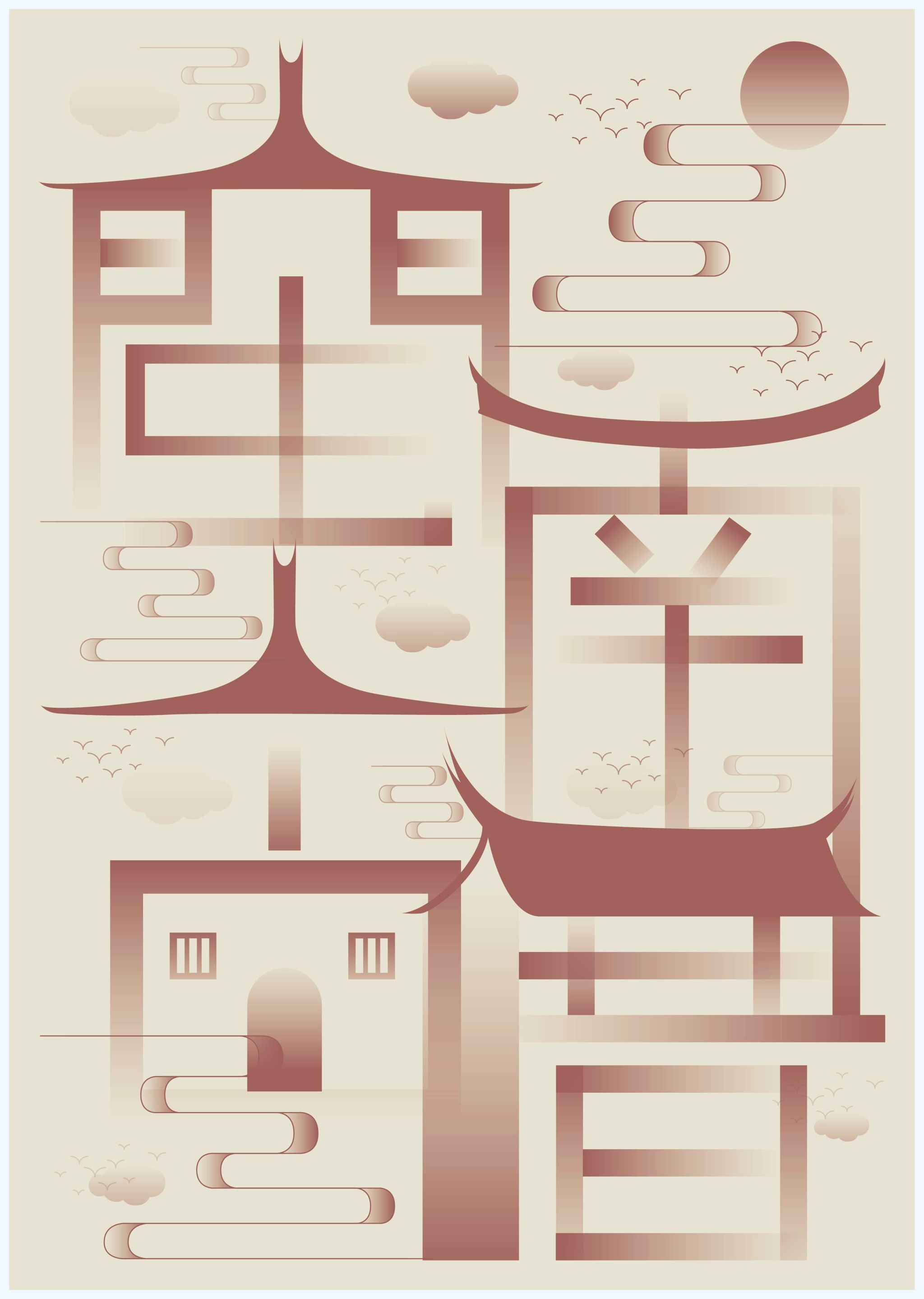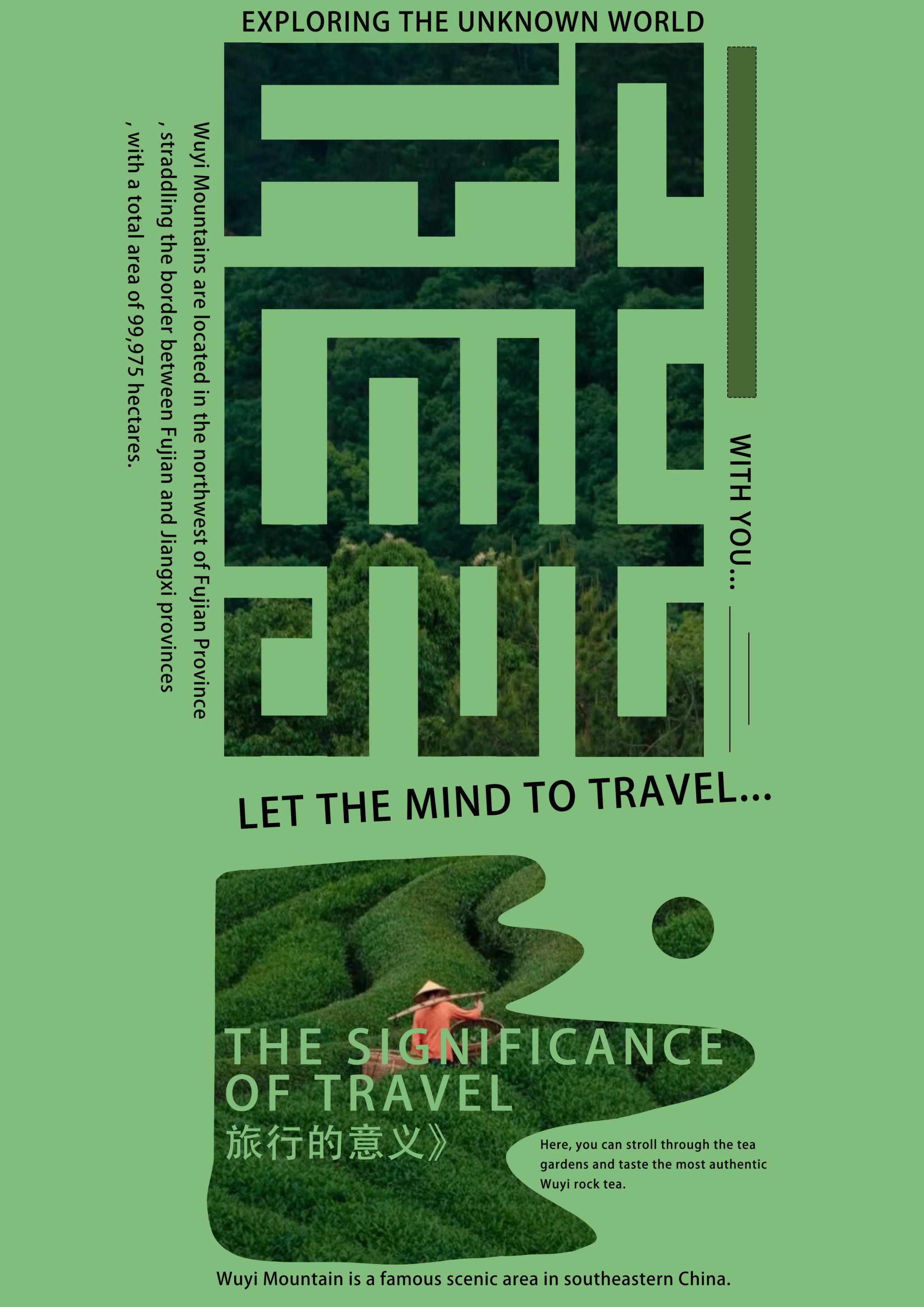 当文字遇见图像,当地域文化遇上现代设计语言。海报是版式设计中最具张力的表现形式,也是视觉冲击力与信息密度平衡的艺术。在本主题中,同学们以"远行"与"根脉"为双线索展开创作:旅行海报聚焦乌兰布统的辽阔草原与武夷山的丹霞茶韵,同学们用网格解构风景,让留白成为情绪的容器;文化海报则深耕福建本土,将闽南传统元素转化为当代文字设计。笔画间的呼吸、中西文的碰撞,让厚重的地域文化获得轻盈的视觉表达。