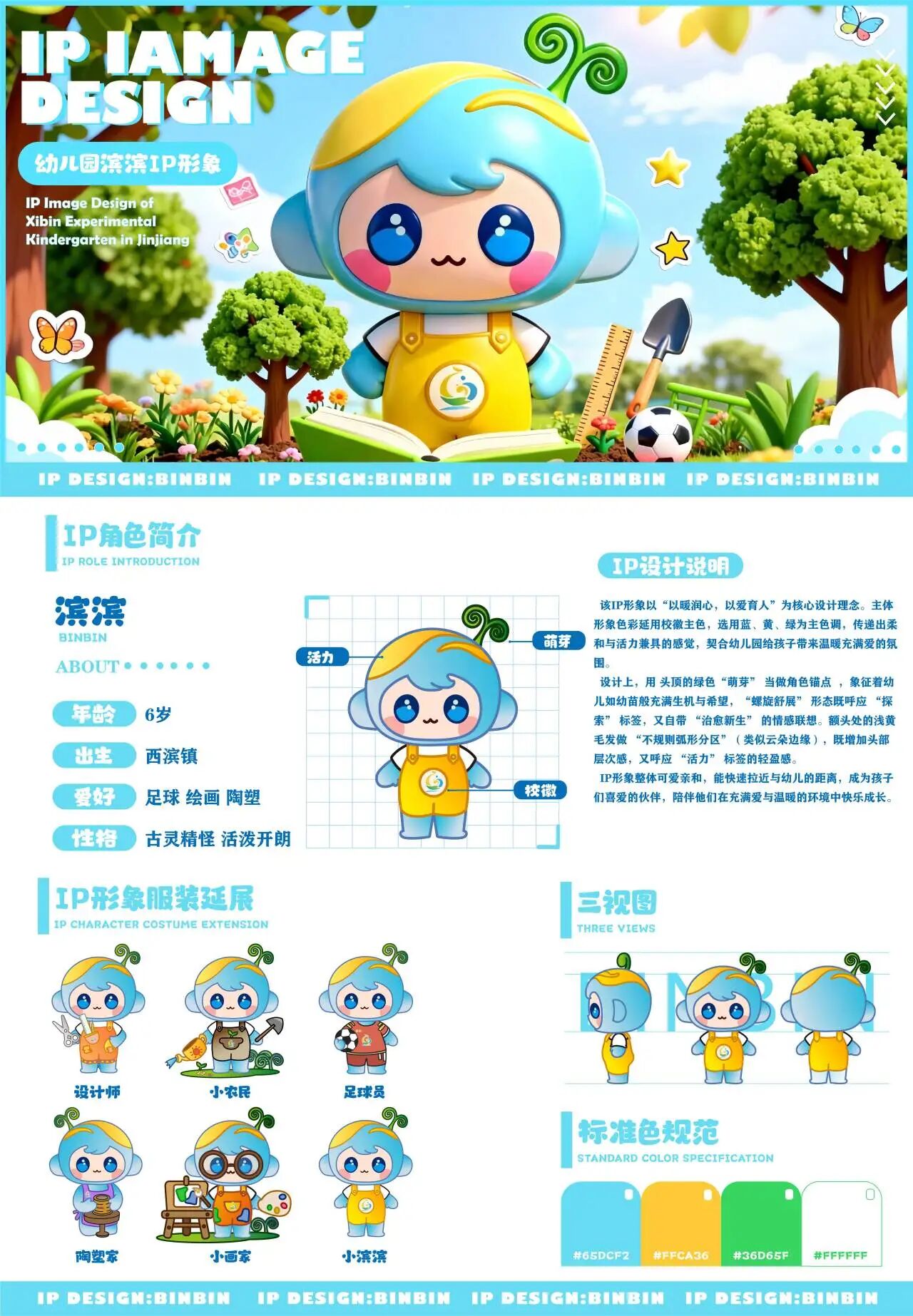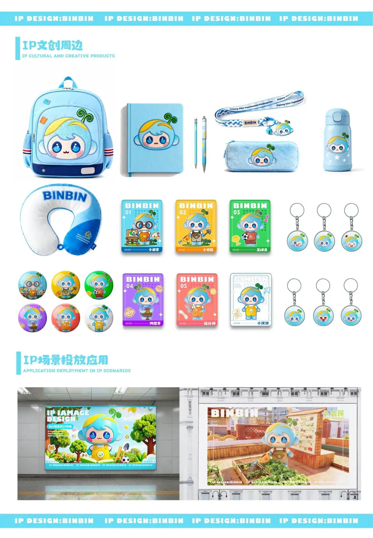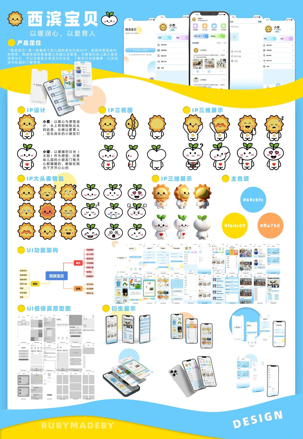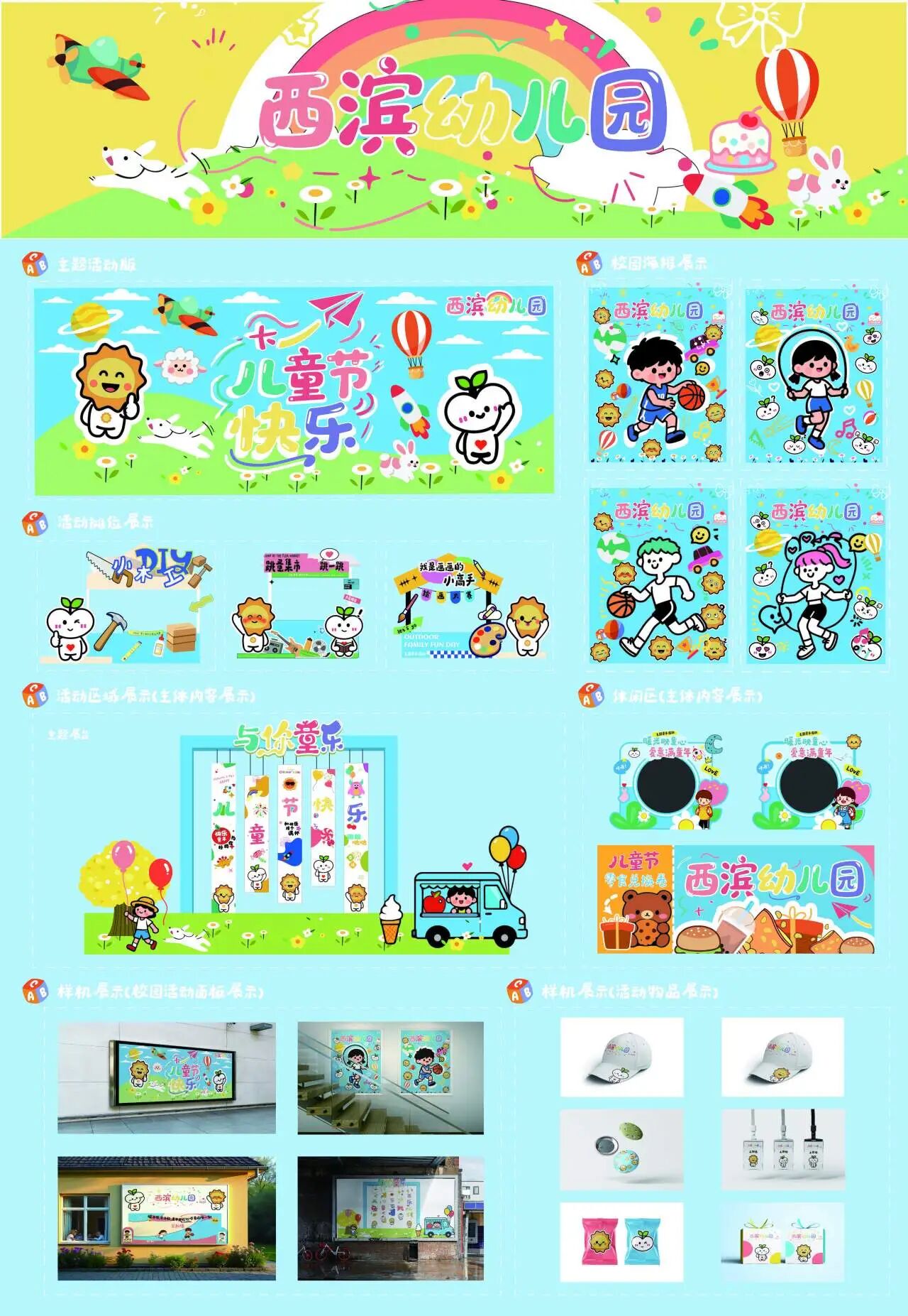 此外,针对西滨幼儿园的需求,实践队以幼儿园办学理念为核心,融入西滨本土元素,设计了一系列校园IP形象及衍生,极大地丰富了幼儿园的教学场景与校园文化。