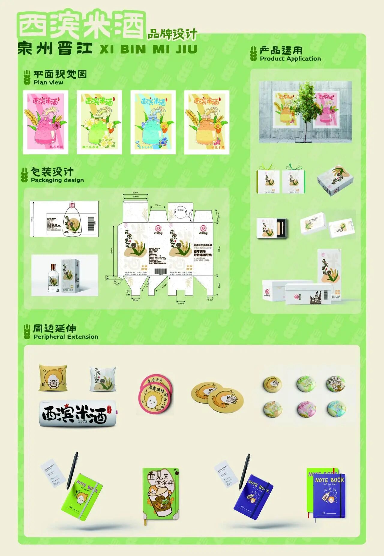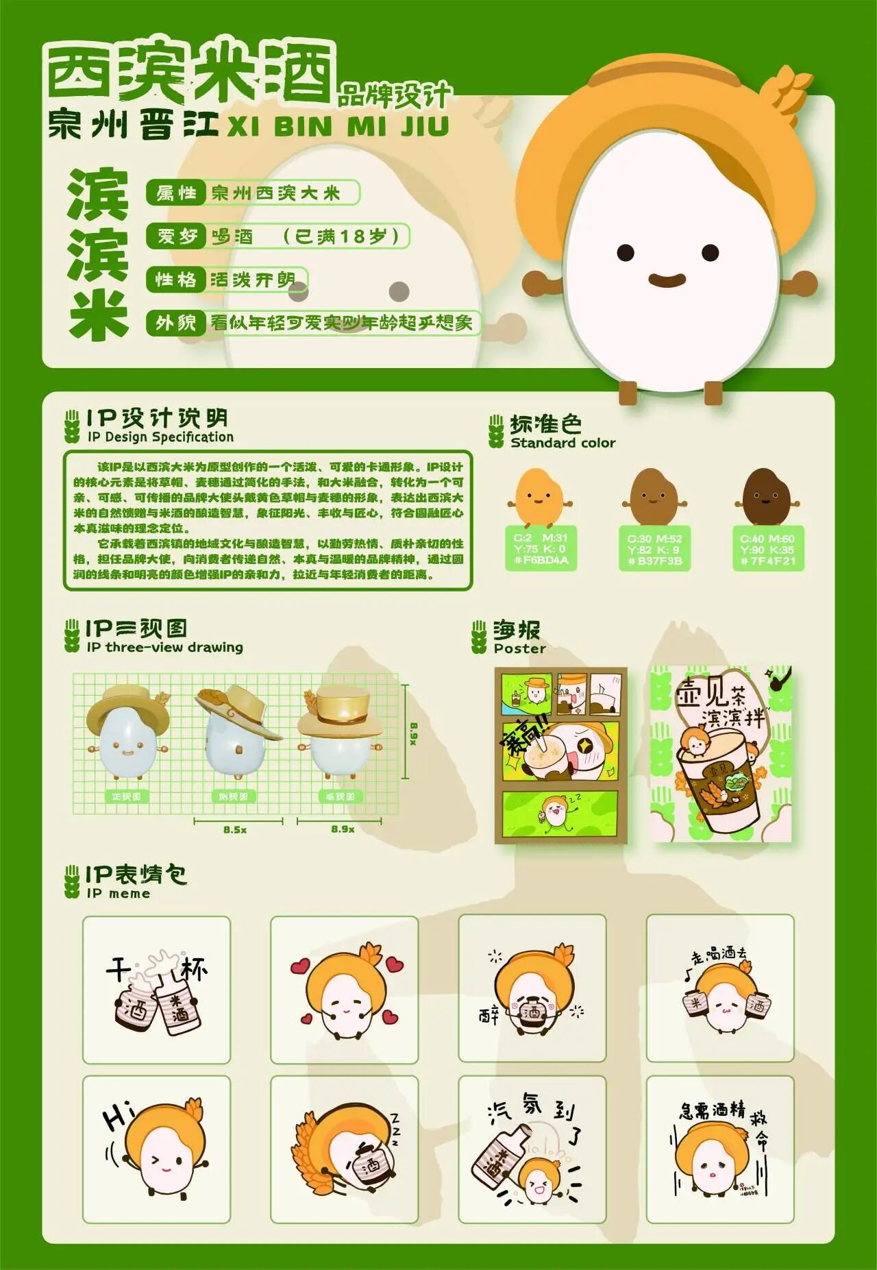基于这些素材,实践队创作宣传短片,全面展示了西滨镇的田园风光、民俗风情及产业发展。同时,实践队还结合西滨镇的地理特征和文化符号,设计了一套辨识度高、适配多场景的文旅IP形象,并围绕西滨米酒的传统工艺与文化内涵,进行了瓶身包装和礼盒设计,显著提升了产品的颜值与品牌溢价。