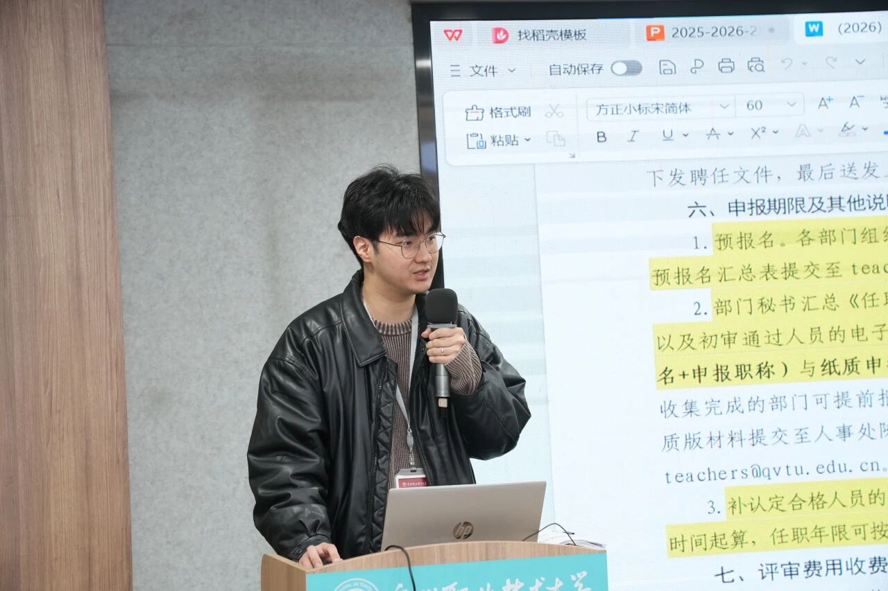 会议伊始,李院助介绍工艺美术专业杨淑馨教授,欢迎其加入艺传学院大家庭,为学院发展添砖加瓦。紧接着行政秘书邱柏奇重点强调职称评定材料规范及文件的核心要求,逐一明确细则,进行全面细致的讲解。教学秘书许娴聚焦教学规范性与时效性,结合学校合格评估工作,对教学材料归档提出严格要求,着重强调课堂管理以及毕业设计流程,做到所有材料的规范性与时效性。毕业班辅导员钟荣针对岗位实习工作展开专项解读,重点梳理流程与材料要求,明确纸质版材料的提交规范以及实习评分细则,提醒指导老师全程做好审核与督促,同步做好学生就业跟踪与信息登记工作。