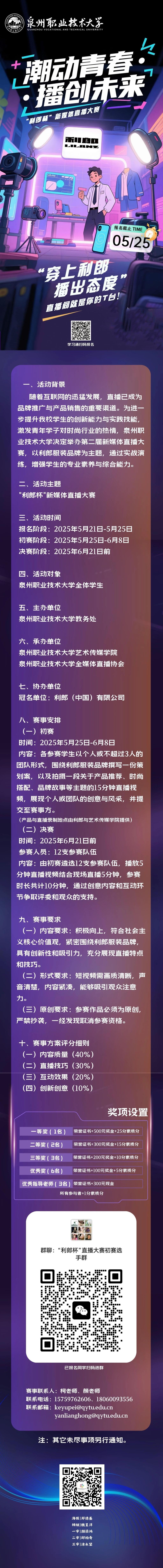 泉州职业技术大学“利郎杯”新媒体直播大赛喊你来报名啦!