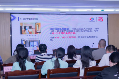 深沪镇人才办工作人员曾君霞现场解读了《晋江市加快集聚高校毕业生来晋创业就业的若干措施》。这项被称为晋江青年人才“十条”的政策,为高校毕业生提供了覆盖求职、就业、创业、安居全周期的全方位支持,让政策红利真正落地。