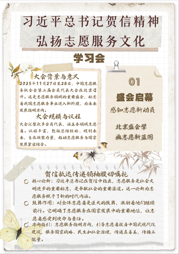 11月27日至28日,中国志愿服务联合会第三届会员代表大会在北京召开。大会宣读习近平总书记贺信,明确志愿服务在新时代的定位与使命,为推进中国式现代化汇聚志愿力量。会前,全体起立,大屏播放贺信原文,现场再次聆听领袖嘱托,倍感使命光荣、责任重大。