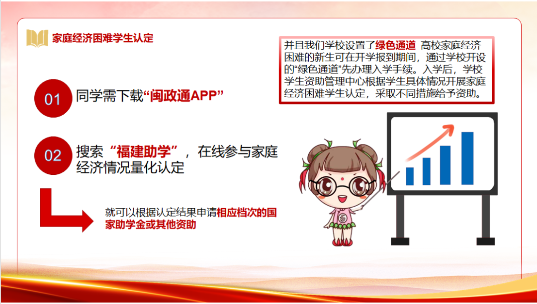 曹婧琰同学这份PPT,以“让政策‘活’起来”为主题,图文并茂地解读国家资助体系,涵盖各类奖助贷补政策。通过清晰的申请流程和生动案例,助力学子深入了解并获取资助,确保政策精准落地,传递温暖。