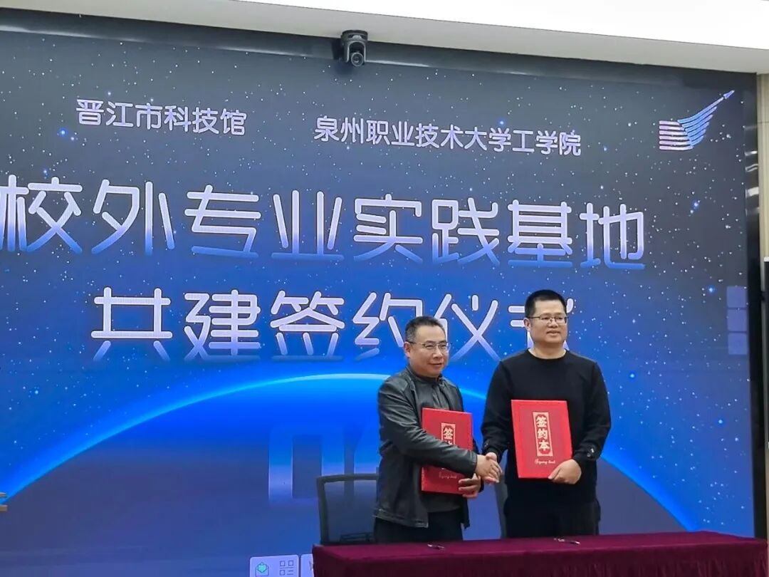 活动的高潮出现在签约环节——我校工学院副院长蔡海毅与晋江市科技馆馆长张建军共同签署《校外专业实践基地共建协议书》。这一举措将工学院的专业优势与科技馆的实践需求紧密联结,为学子打造可持续、互利共赢的实践育人平台。