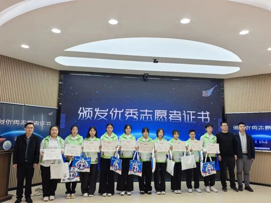 随着优秀志愿者名单的揭晓,活动进入了激动人心的表彰环节。三创书院多名学子因出色的志愿服务表现获得荣誉。晋江市科技馆馆长张建军、三创书院党总支书记李海洋等嘉宾共同为优秀志愿者颁发证书及定制纪念品。