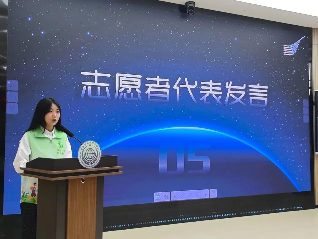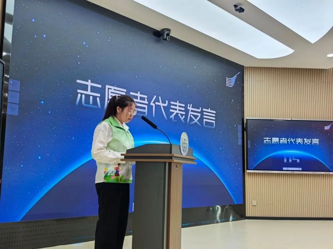 三创书院党总支书记李海洋在随后致辞中指出,志愿服务是高校实践育人的重要载体。他表示:“三创书院始终鼓励学子走出校园、服务社会,期待以此次活动为契机,深化与科技馆的‘产学研用’融合,让志愿精神在实践中闪光。”