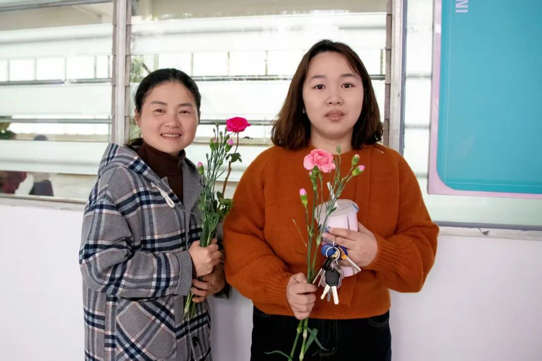 活动现场,工作人员精心筹备,为现场的女性们送上了娇艳欲滴的节日鲜花。这份美好的祝福覆盖了校园内的各个群体,从朝气蓬勃的学生,到默默奉献的食堂阿姨,再到辛勤耕耘的女性教师,甚至还有在校园里求学的国际友人,无一不被这份关怀所环绕。当一束束鲜花递到她们手中,现场瞬间绽放出无数灿烂的笑容。那一双双明亮的眼眸中,闪烁着感动与惊喜的光芒,仿佛在诉说着对这份温暖的心意。