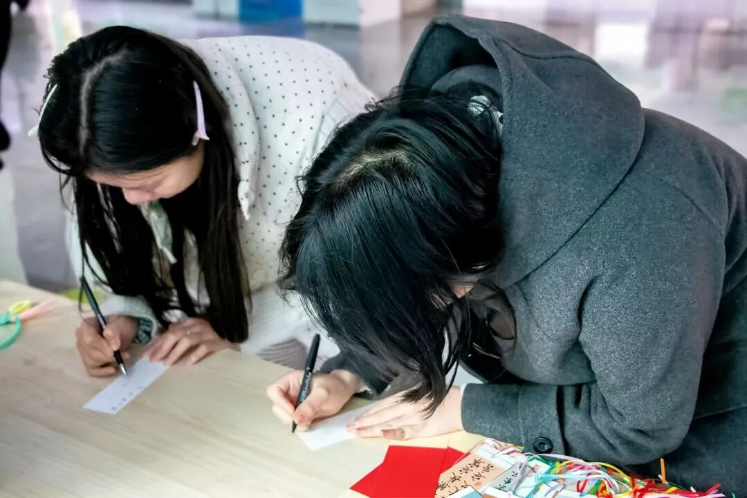 心愿寄语区则是活动中充满温情的角落。同学们纷纷驻足停留,手执笔尖,在精致的心愿卡上郑重写下对女性朋友、师长的鼓励与祝福。字字句句间,凝聚着青春的敬意与心底的温柔,大家以笔为媒,亲手将这份纯粹的善意传递给身边的每一位女性。