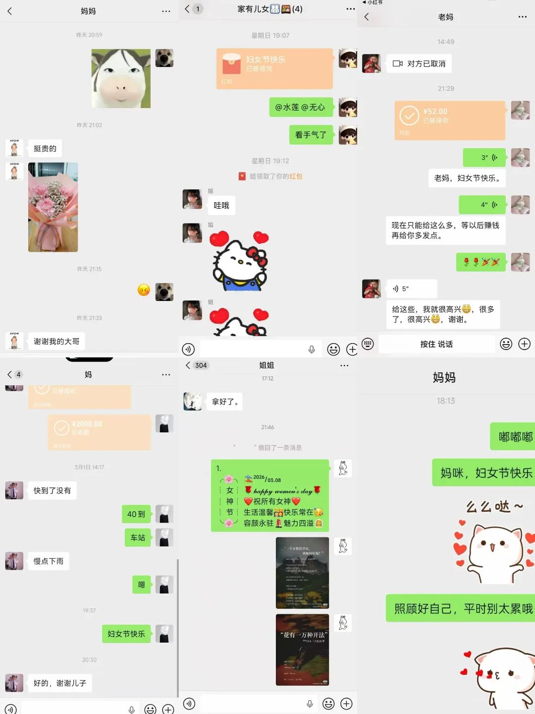 同学们纷纷向远在家乡的妈妈、姐姐发送了暖心的节日祝福。一句“妈,节日快乐,您辛苦了”,承载着平日里羞于表达的感恩;一段长长的语音,诉说着离家求学时对亲人的牵挂。相隔千里的亲情,在这一刻透过屏幕温暖相连。
