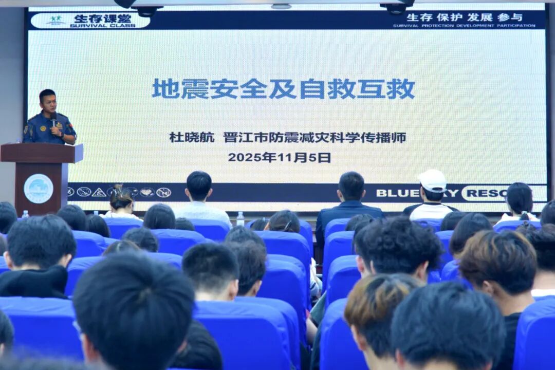 此次讲座不仅让同学们了解到国际救援背后的艰辛与坚守,也切实增强了大家的防灾意识和自救能力。杜晓航与晋江市瑞桐蓝天救援队的奉献精神,深深感染了在场的每一个人,也为校园安全教育注入了新的温度与力量。