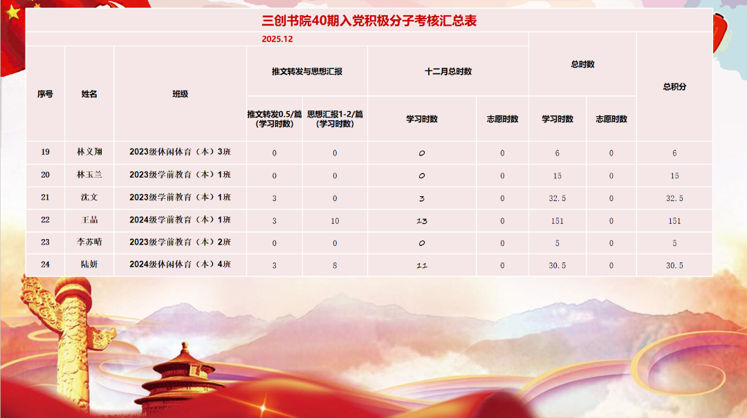 37、38、39、40期入党积极分子及党务工作室干事总积分公布