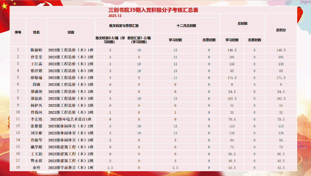 4.37、38、39、40期入党积极分子及党务工作室干事总积分公布。
