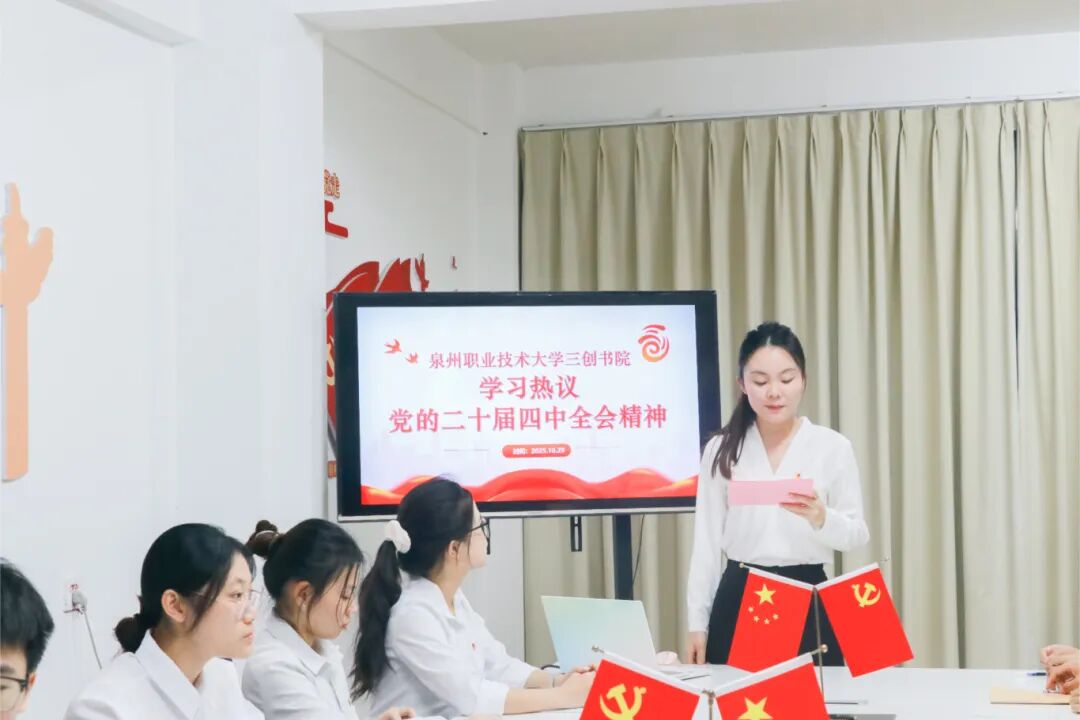 党的二十届四中全会于2025年10月20日至23日在北京举行,审议通过了《中共中央关于制定国民经济和社会发展第十五个五年规划的建议》。为深入学习党的二十届四中全会精神,三创书院在3570活动室召开学习热议党的二十届四中全会精神专题会,校学生会主席团成员刘晓婷、兰周明,三创书院学生会干部、干事参加会议,共同学习党的二十届四中全会核心要义,激发投身强国建设的青春热情。