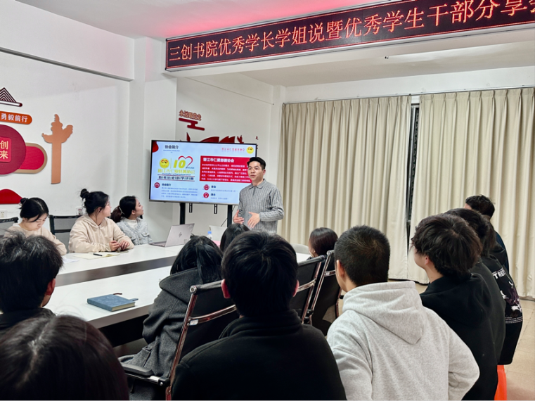此次分享会,王鹏辉学长倾囊相授成长经验,为书院学子提供了实用参考,也激励大家以榜样为镜,在青春路上奋力追梦。三创书院将持续推进“优秀学长学姐说”系列活动,以榜样力量为引领,助力学子明晰成长路径、锤炼综合素质,在青春赛道上笃定前行。